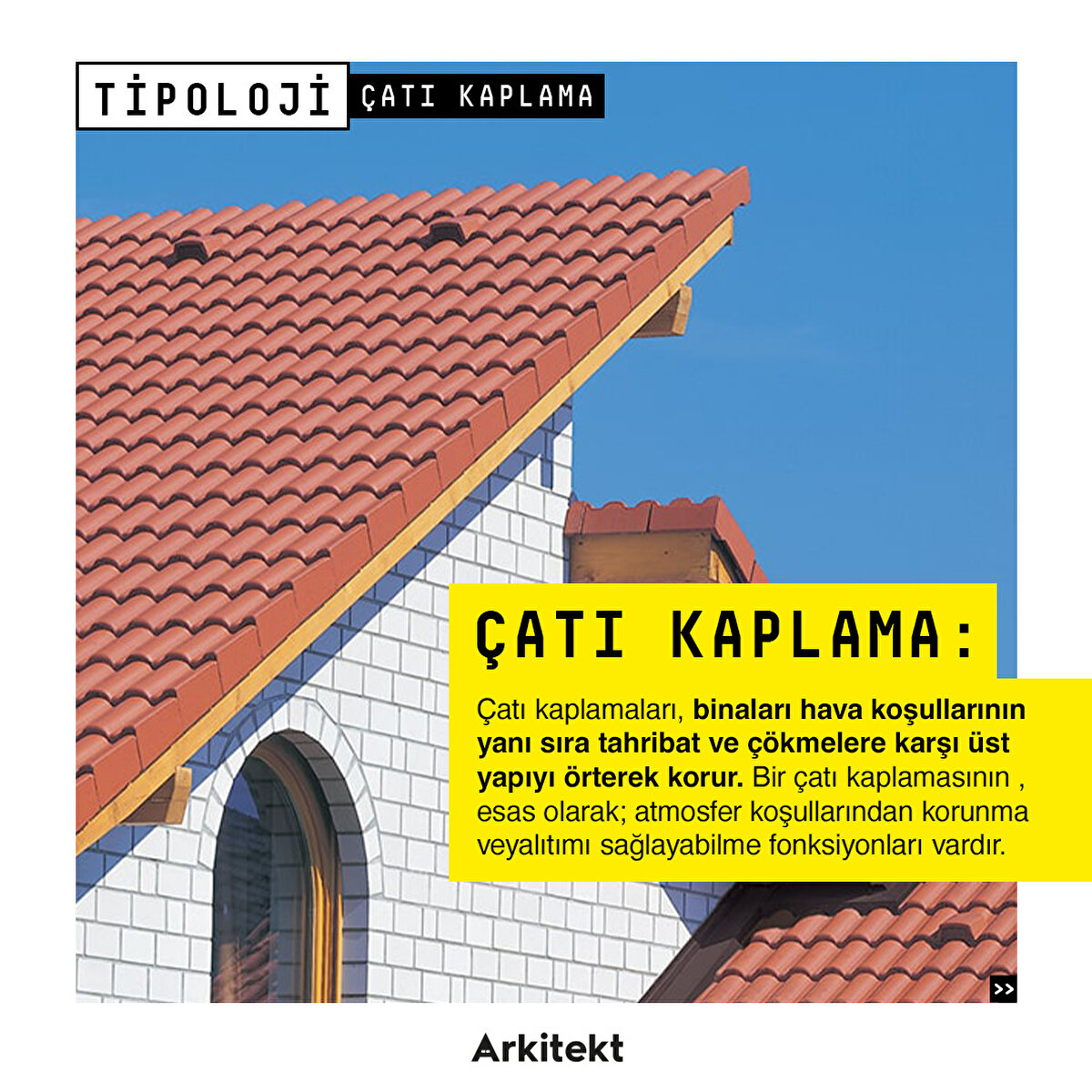 tahribat ve çökmelere karşı üst yapıyı örterek korur. Bir çatı kaplamasının esas olarak; atmosfer koşullarından korunma ve yalıtımı sağlayabilme fonksiyonları vardır.