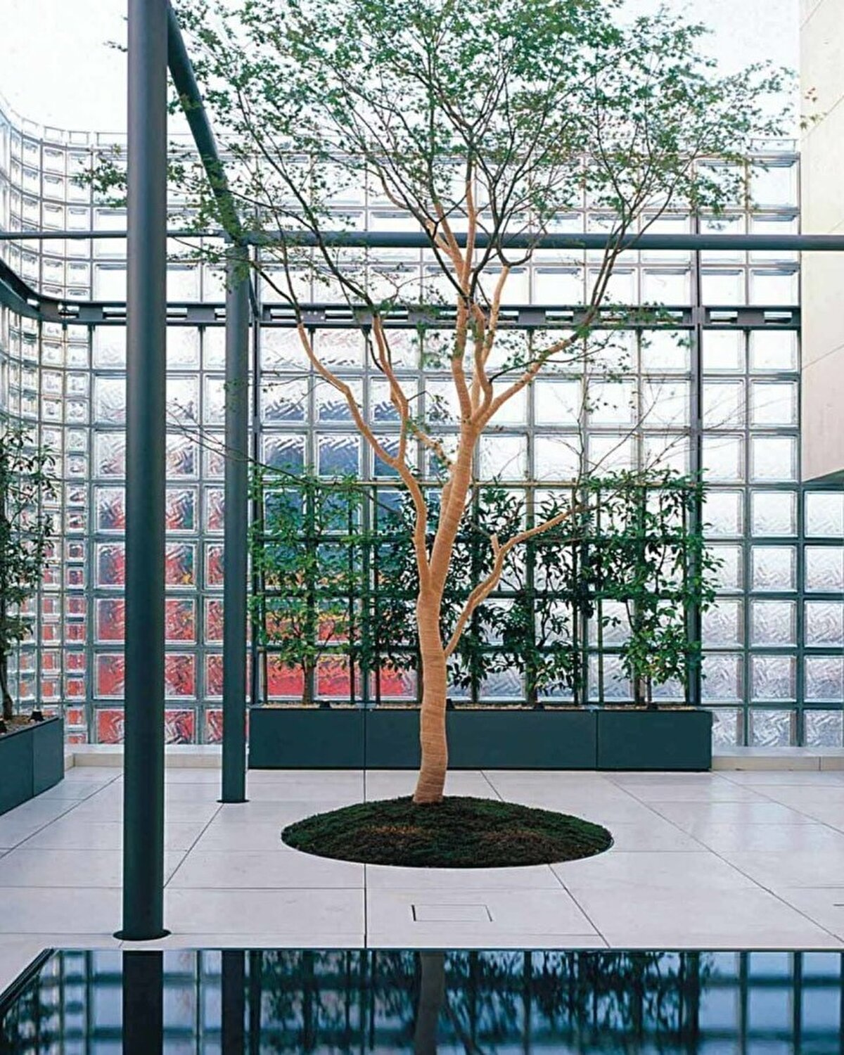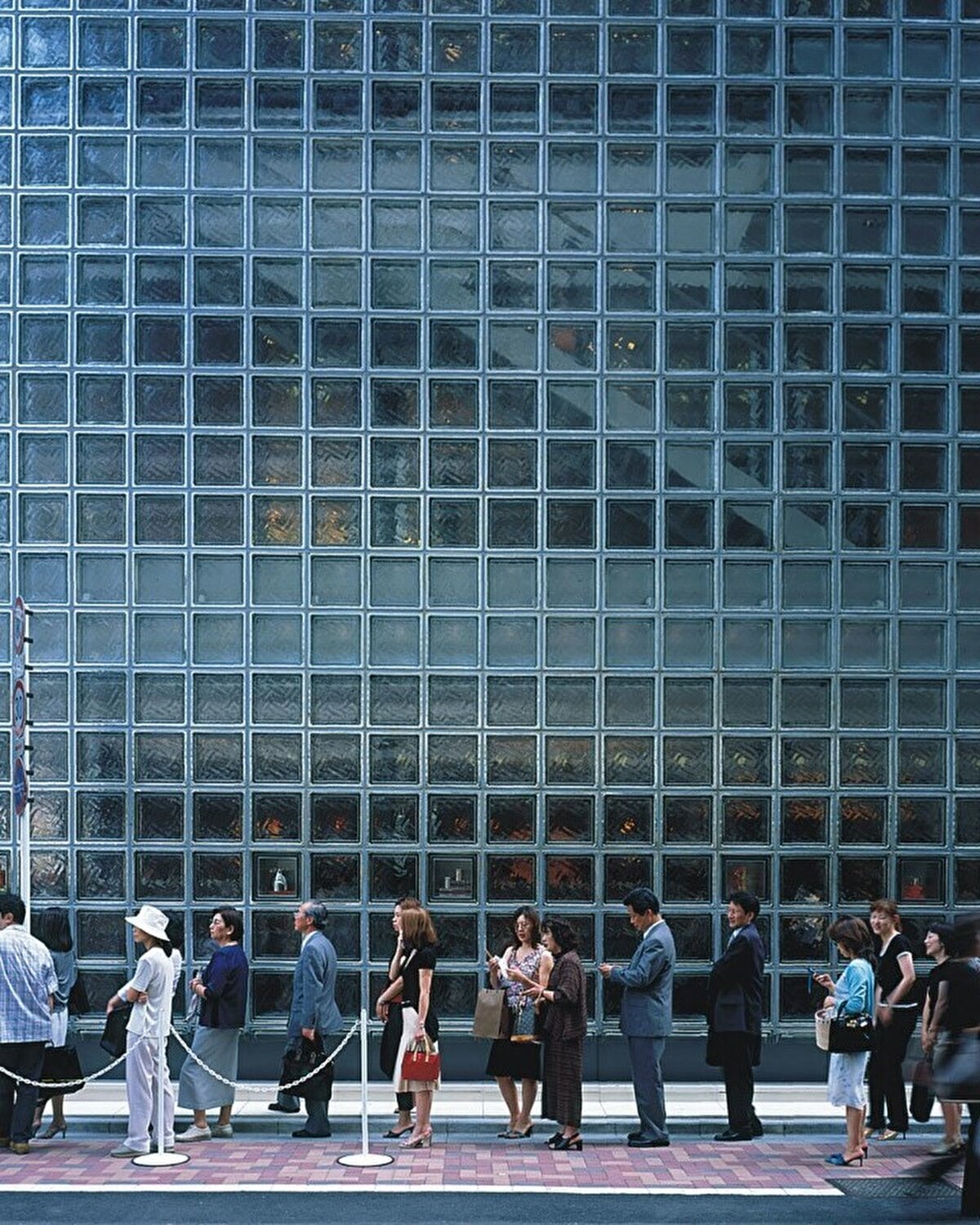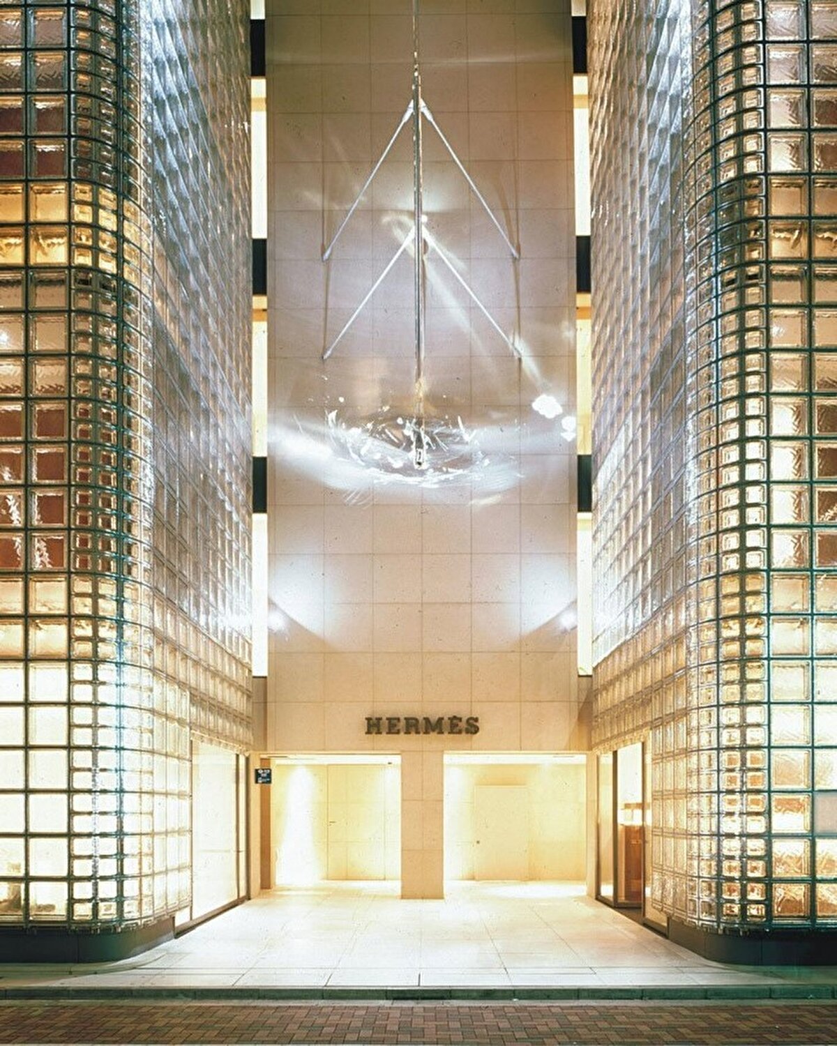Hermès, 1998 yılında Japonya'nın Tokyo şehrindeki Ginza alışveriş bölgesinde genel merkez binası için Renzo Piano'yu görevlendiriyor. Yoğun inşa edilmiş ve neon ışıklı bu bölgede, bina deprem ve yangın düzenlemelerine uygun olarak tasarlanıyor. 10 metre genişliğinde, 56 metre derinliğinde ve 10 kat yüksekliğinde olan yapı, 13.000 adet 450 mm kare cam bloktan yapılmış benzersiz bir cepheye sahip. Cam bloklar, Floransa'da Vetroarredo tarafından özel olarak üretiliyor ve sismik şoklara dayanıklı esnek contalarla monte ediliyor.