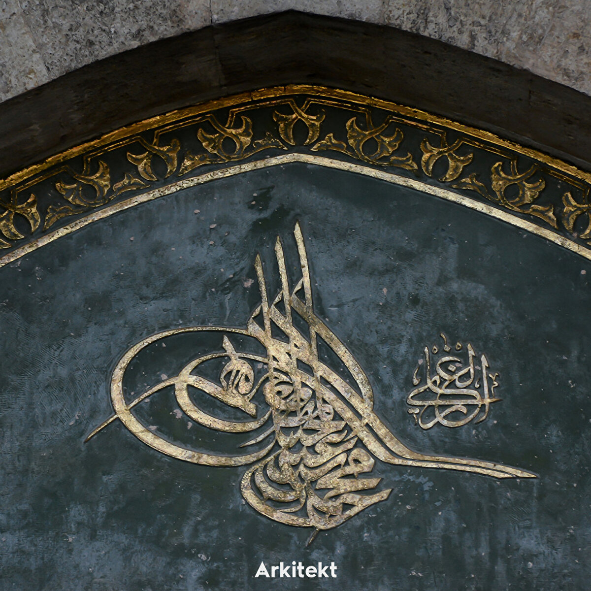 Topkapı Sarayı'nın dört avlusunda yer alan yapıların üzerinde, bir nişâne olarak padişah tuğraları görülmektedir.