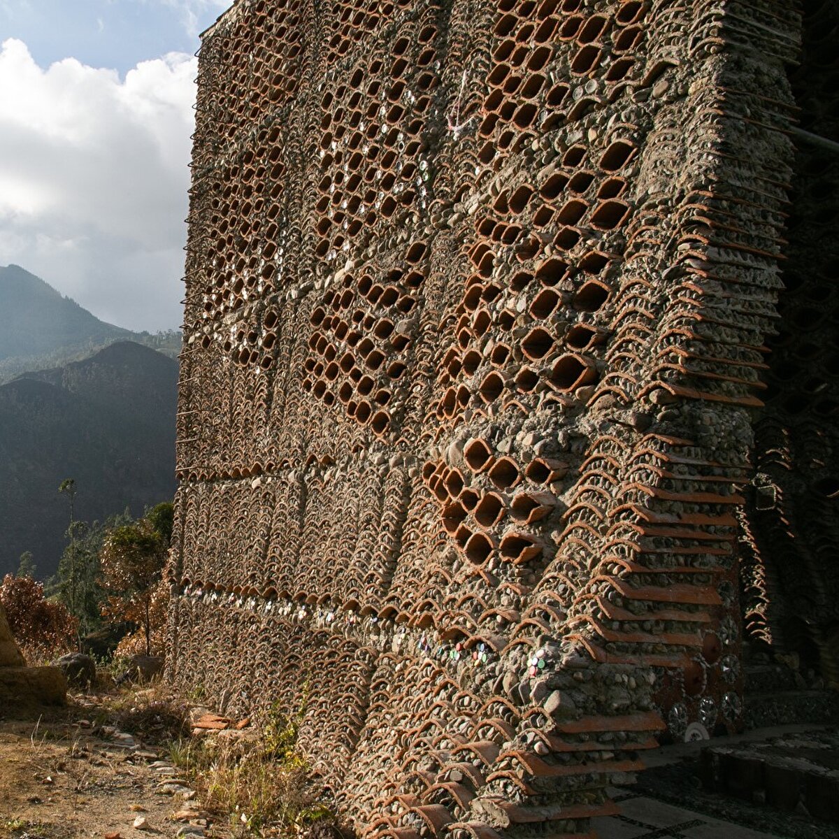 Yapının inşasında yerel ve geri dönüştürülmüş malzemeler tercih ediliyor. Özellikle, terk edilmiş evlerden toplanan kiremitler ana yapı malzemesi olarak kullanılıyor. Bu yaklaşım, sürdürülebilirliği teşvik ediyor ve maliyetleri düşürüyor.