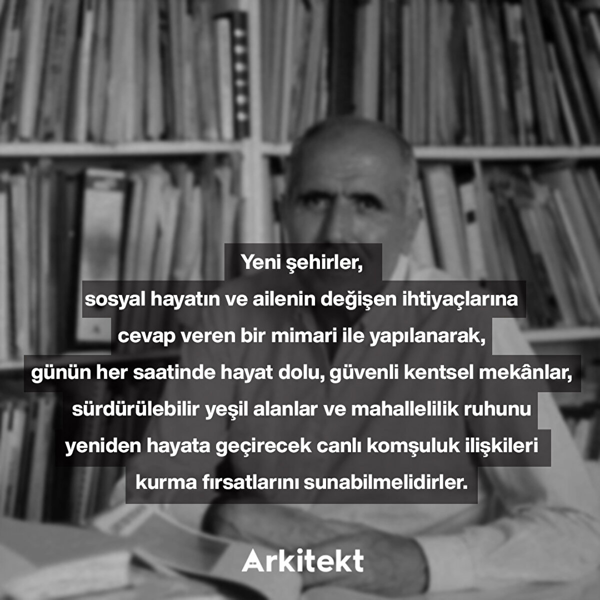 "Fiziki çevre gelir ayırımı yapılmadan, düşük gelir grubundaki ailelerin bireylerinin de mütevazı, ancak güzel ortamlarda yaşadığı, çocuk, yaşlı, kadın erkek her bireyin toplumsal oluşuma yabancılaşmadan katkıda bulunmasını sağlayacak, bireyin çevrenin oluşumuna katılabildiği ve çevresinin sorumluluğunu yüklenerek çevresini denetleyebildiği bir yapıya kavuşturulmalıdır."