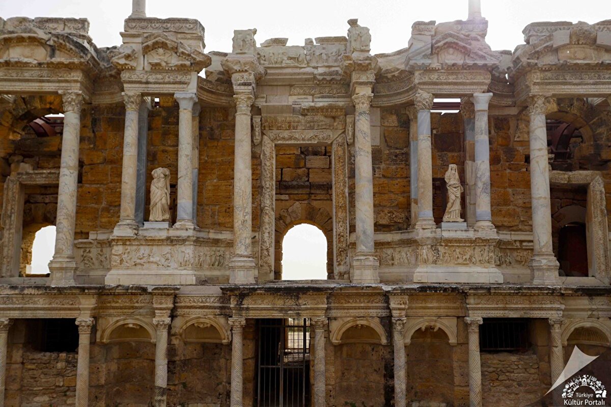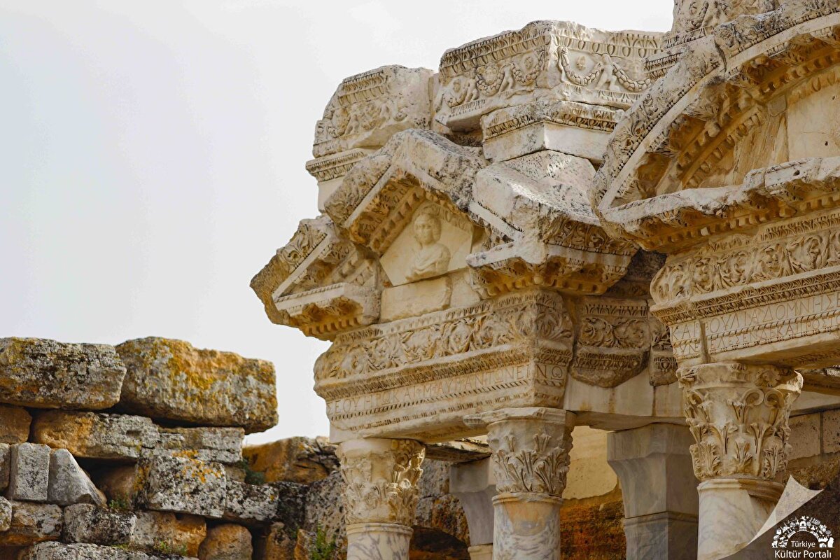 Kentte 2 anıtsal kapı, ana caddeye paralel ve dik gelen cadde ve sokaklar bulunuyor. Yaklaşık 1 km uzunluğundaki ana cadde, kenti ikiye bölüyor ve bu caddenin her iki tarafında revaklar, kamusal binalar, dükkan ve atölyeler yer alıyor .Kentin başlıca yapıları; Hamam-Bazilika, Latrina, Tiyatro, Plutonıum, Apollon Tapınağı, Su Kanalları ve Nymphaeumlar, Kiliseler, Büyük Hamam Kompleksi oluyor.