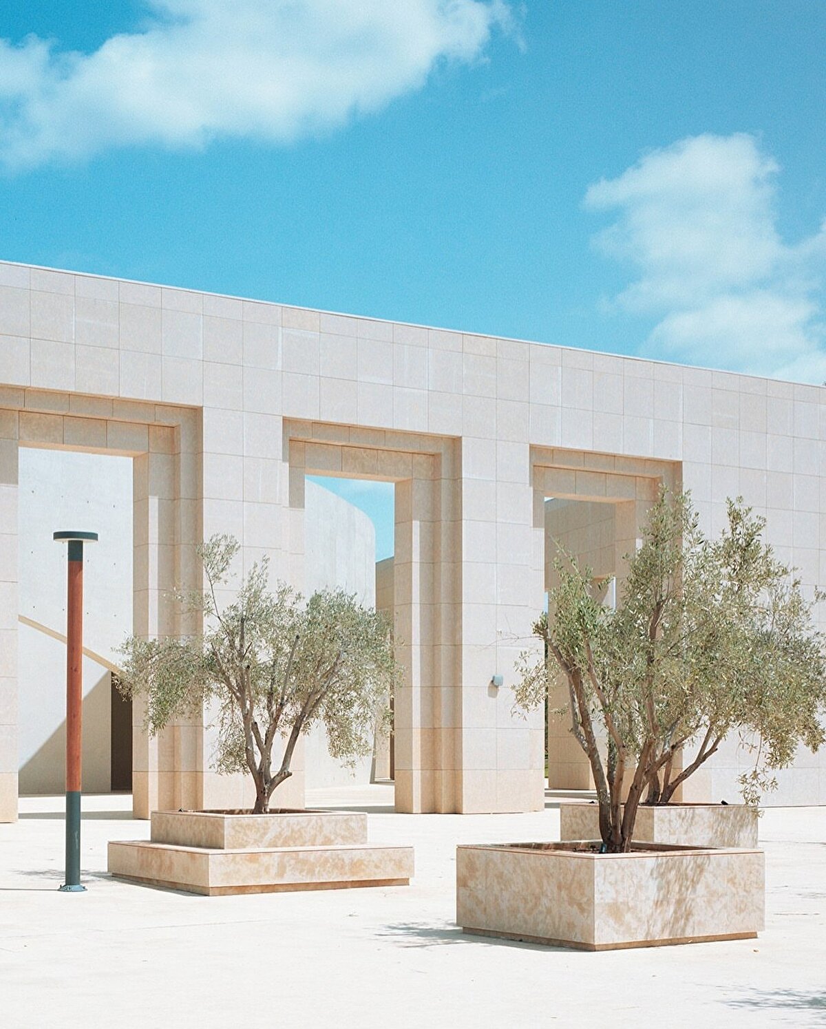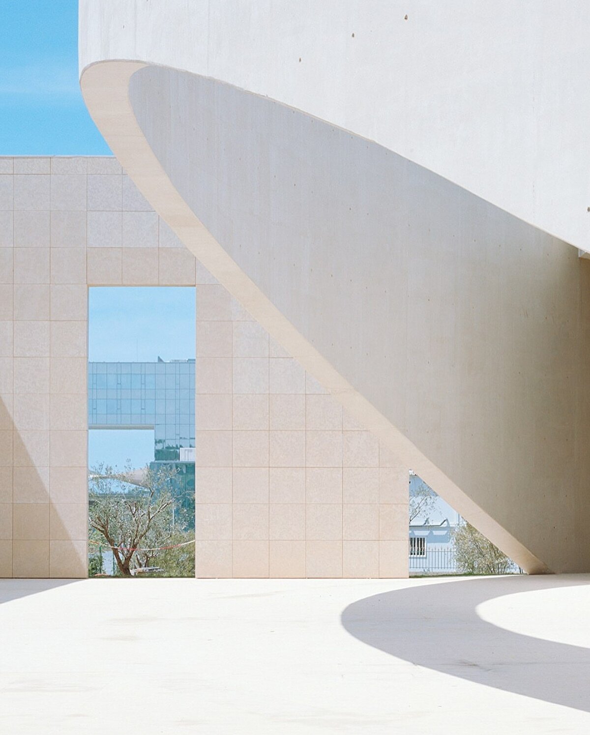 The new conference centre at Mohammed VI Polytechnic University in Rabat, Morocco, connects two parts of the campus and plays an important role as a transition area. Opened in 2024 and designed by Bofill Taller de Arquitectura, the building hosts events of various scales and content, from faculty lectures to industry conferences and public performances. The plan combines circular and square geometries, with small auditoriums, meeting areas, social spaces, and service units situated between these two forms. @bofillarquitectura
