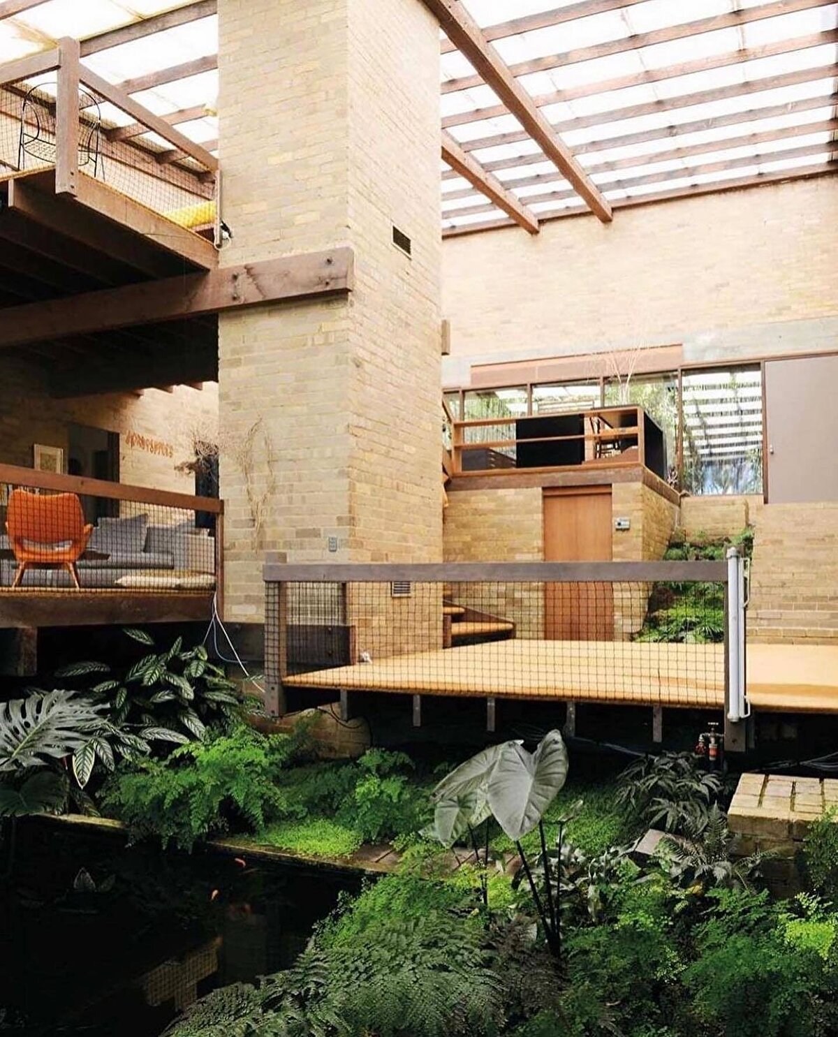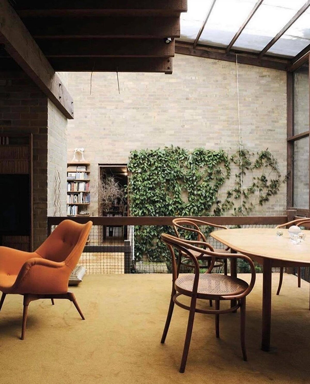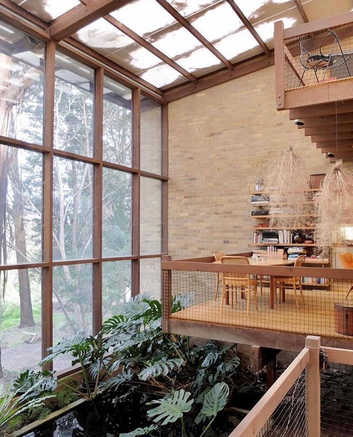 Doğayla güçlü bir bağlantı kurmayı amaçlayan mimar, büyük cam pencereler ve kapılar kullanarak iç mekan ile dış mekan arasındaki sınırları minimuma indirerek evin doğayla bütünleşmesini amaçlıyor. Evin tasarımında ahşap, beton ve cam gibi doğal malzemeler öne çıkıyor; ahşap sıcak bir atmosfer oluştururken, beton ve cam modern ve yalın bir görünüm sunuyor.