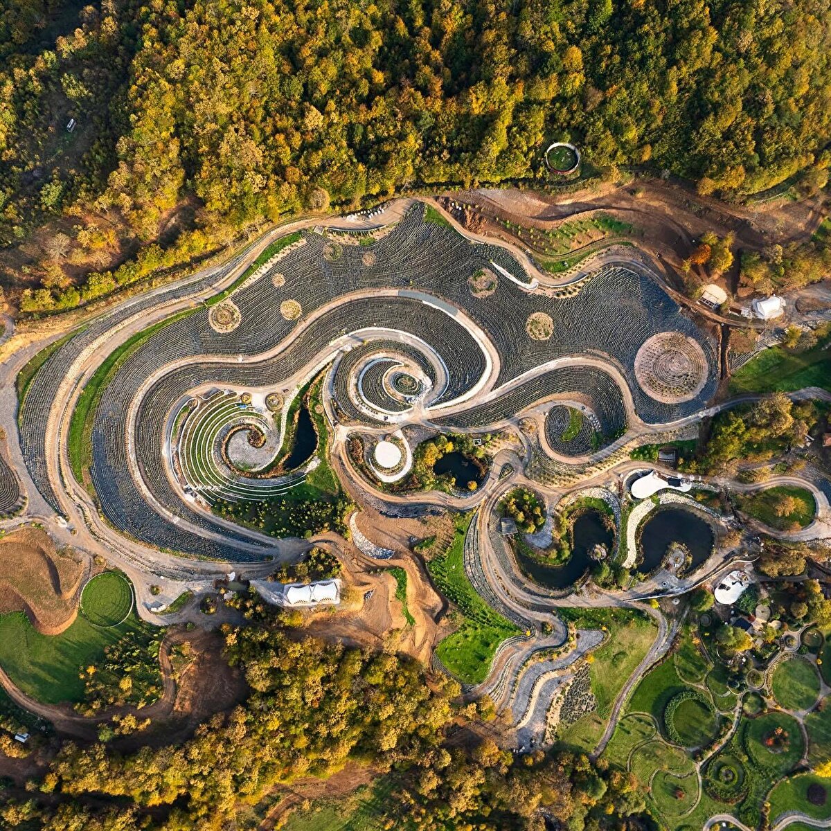 Zukić, bu projeye altı yıl önce, traktör izlerinin oluşturduğu spiral desenlerden ilham alarak başlıyor ve doğal çevreye uyumlu, organik bir tasarım oluşturmak için sezgisel bir yaklaşım benimsiyor.
