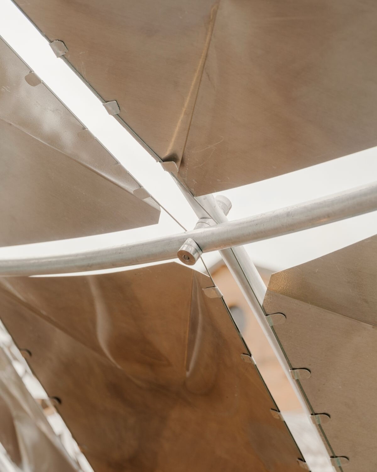 The structural system is inspired by lightweight aluminium technologies used in Porsche racing cars. With its biomorphic form and kinetic surface, the structure offers a dynamic spatial composition while referencing Venice's historical bridge typologies. The bridge is not merely a passageway but also creates a threshold space for users entering the city via water.
