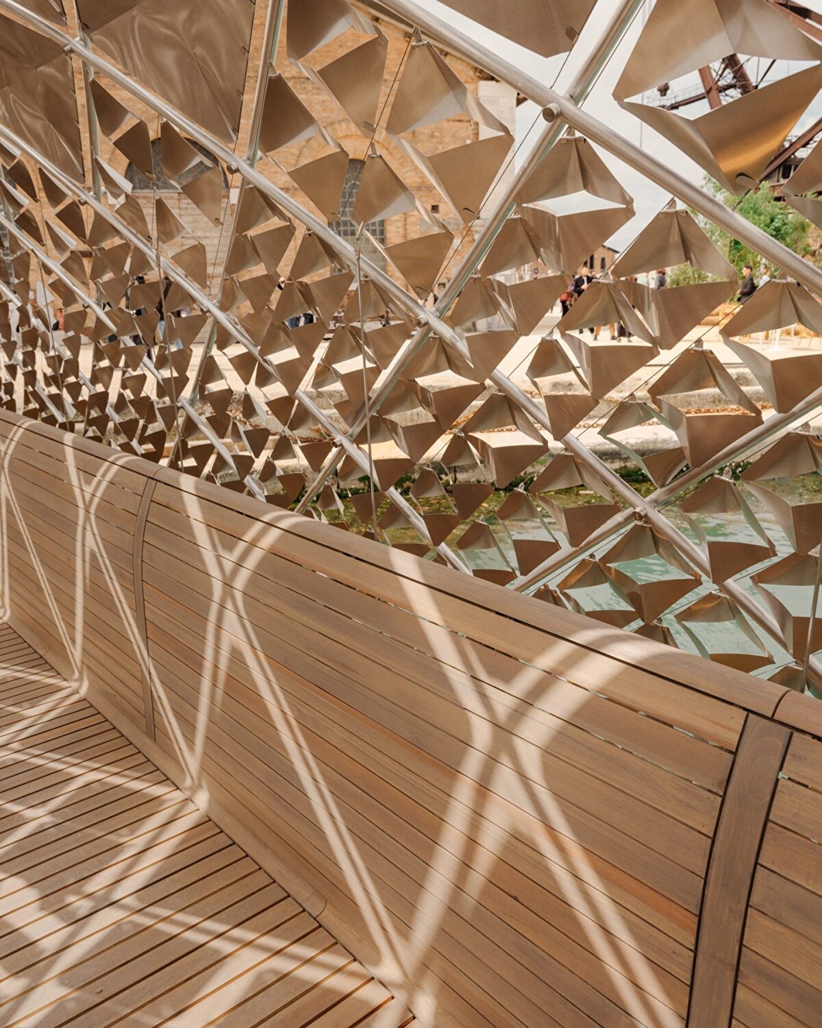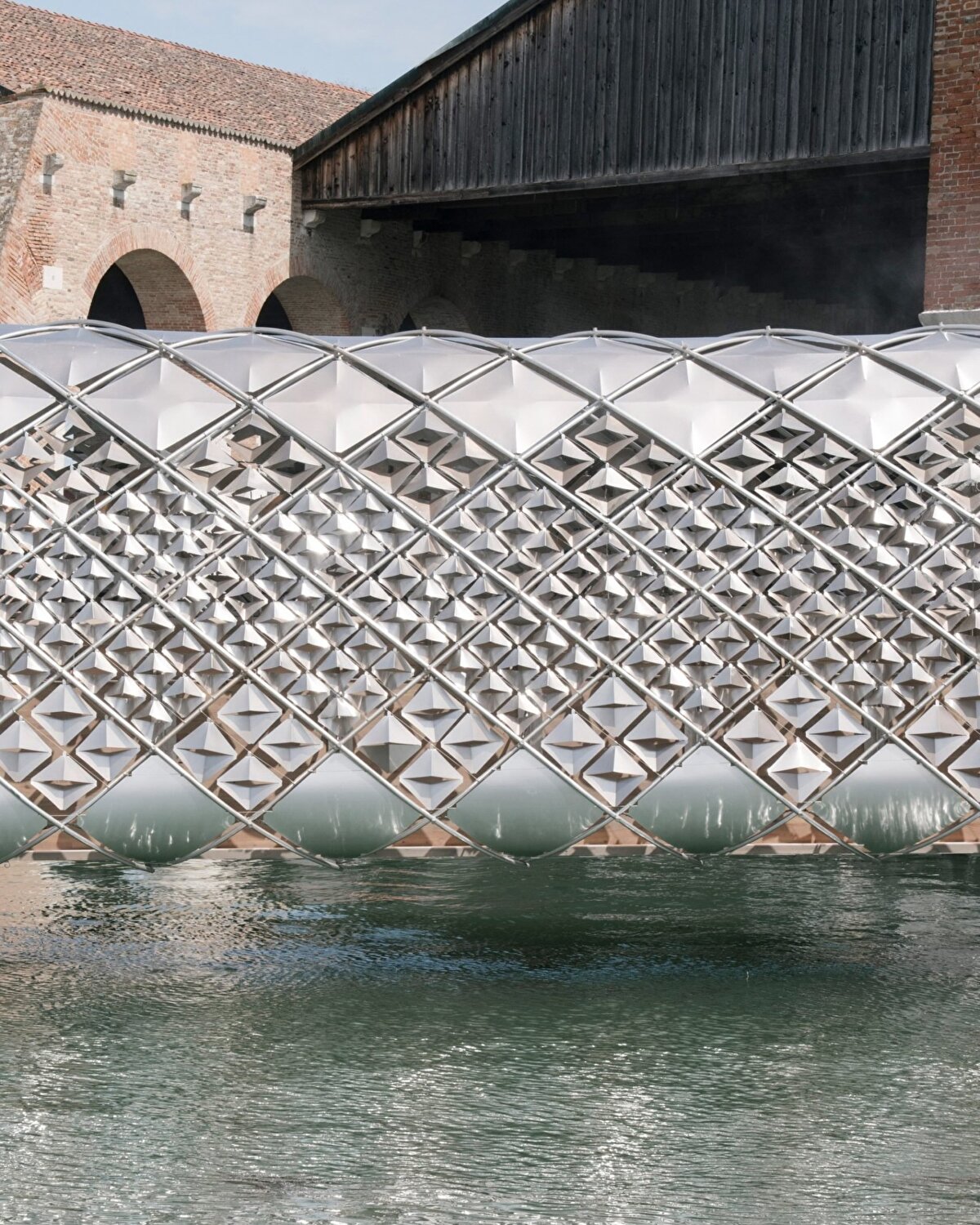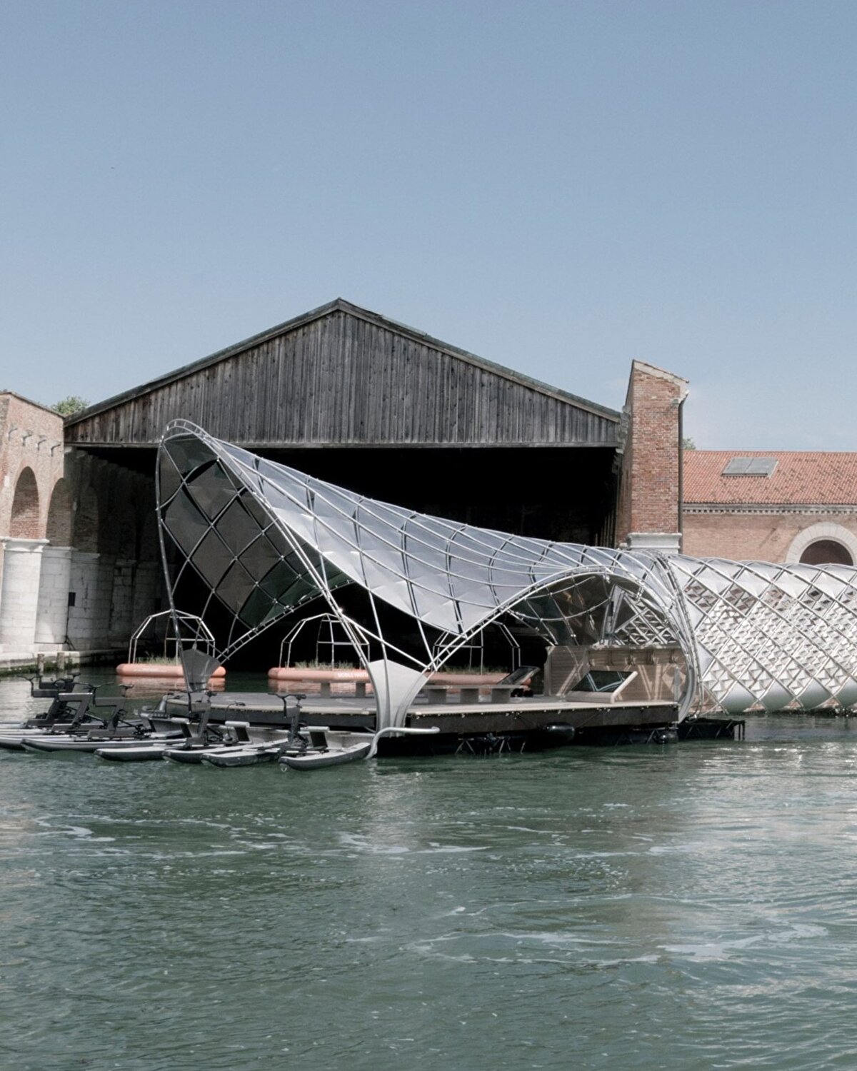Sökülebilir modüler yapısıyla hem geçit hem de köprü olarak işlev gören yapı, açılış haftası boyunca karbon salınımı olmayan ulaşım çözümleri sunan su bisikletleri ve elektrikli motorlu tekneler gibi yeni nesil araçlarla su ve kara arasında bağlantı kuruyor. Enstalasyon, Carlo Ratti (@crassociati) küratörlüğünde 10 Mayıs – 23 Kasım 2025 tarihleri arasında düzenlenen 19. Uluslararası Mimarlık Sergisi kapsamında ziyaretçilere açık olarak sergileniyor.