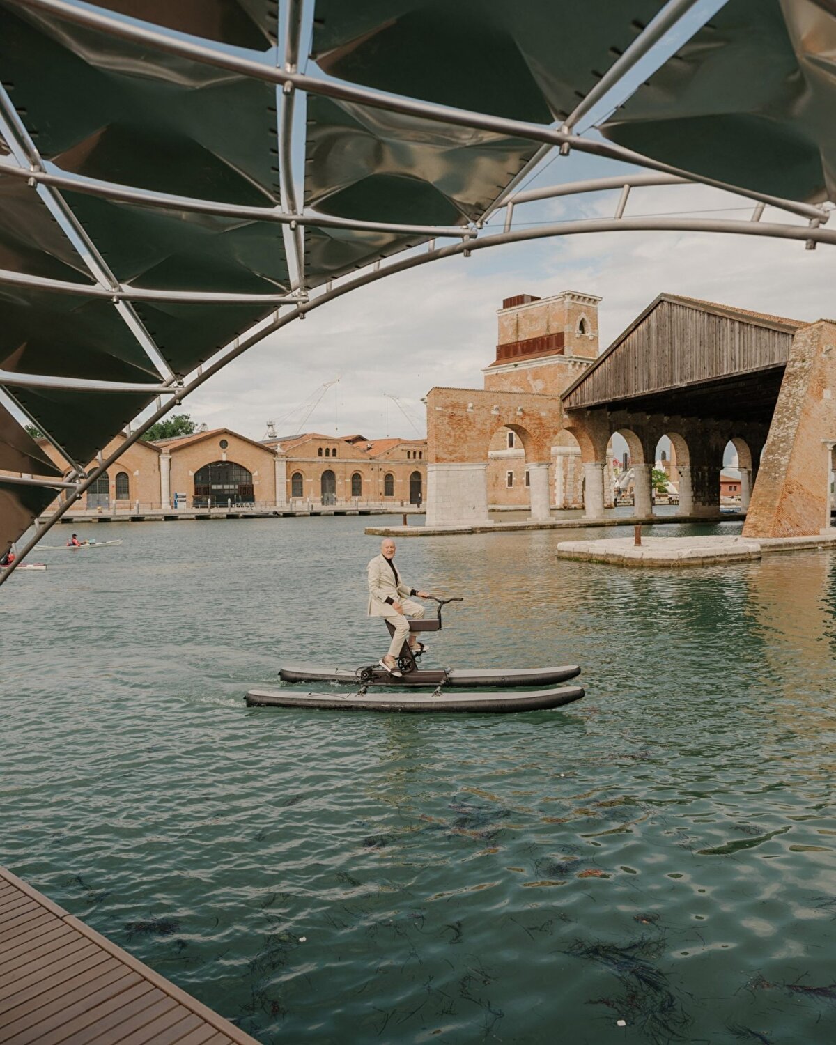 Norman Foster Vakfı ve Porsche iş birliğiyle Venedik Mimarlık Bienali kapsamında tasarlanan “Venedik Su Yolu'na Açılan Geçit (Gateway to Venice's Waterway)", çağdaş ulaşım senaryolarının tarihî kent dokusuna nasıl entegre edilebileceğini araştırıyor. 37 metre uzunluğundaki geçici yapı, Arsenale rıhtımında konumlanıyor ve su bisikletleri ile motorlu teknelere erişim sağlayan yüzer bir pontona bağlanan bir köprü olarak işlev görüyor. @normanfosterfdn @porsche