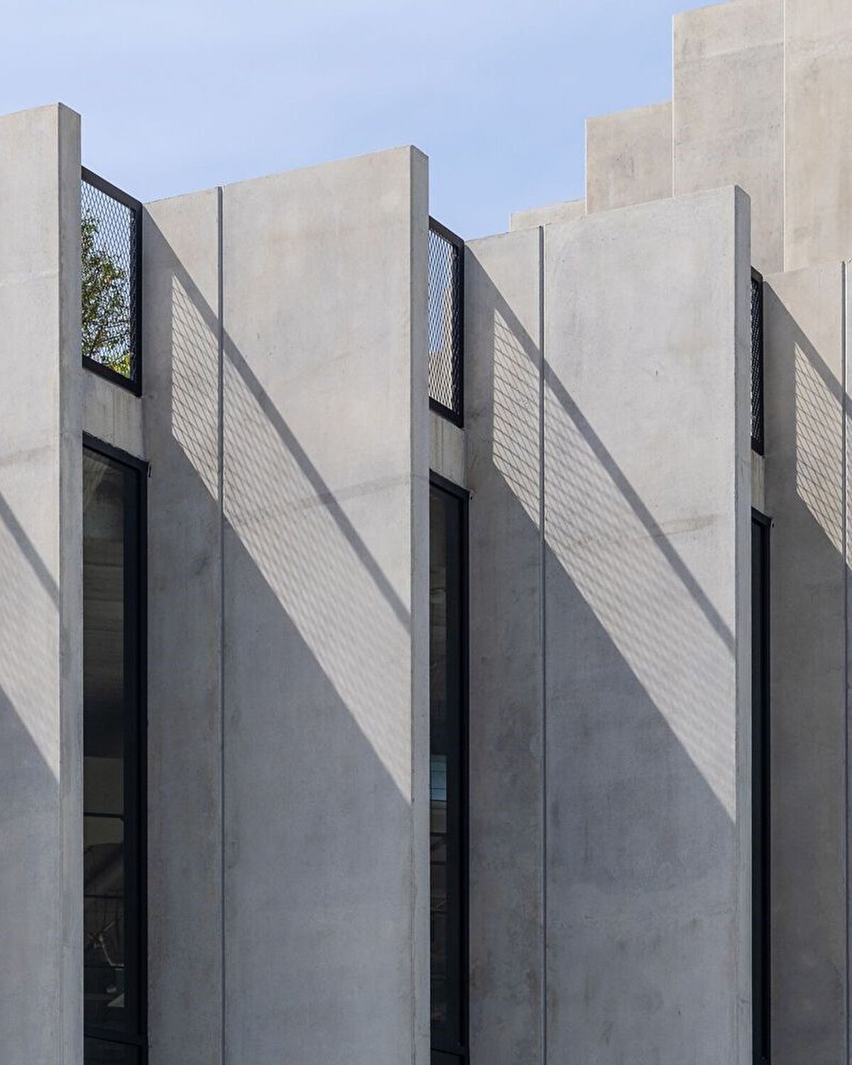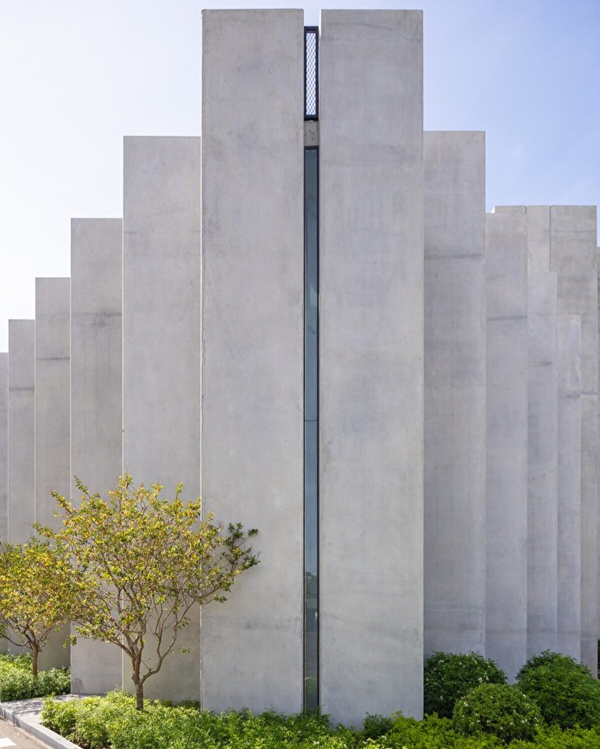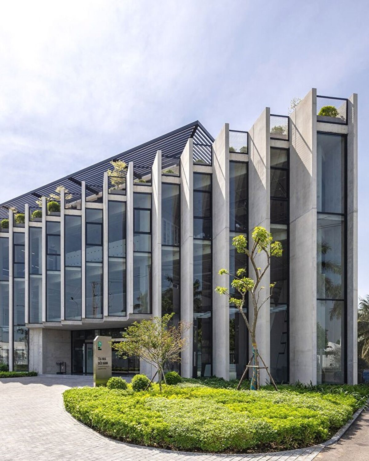 Hanoi'nin sıcak ve nemli tropikal iklimine uyum sağlamak amacıyla, bina cephe sistemi dikkatlice tasarlanıyor. Beton lam elemanları, yoğunlukları ve açılma açıları farklılaştırılarak güneş ışığını ve rüzgârı yönlendirecek şekilde konumlandırılıyor. Güney ve güneydoğu cephelerinde lamlar, maksimum güneş ve hava sirkülasyonu sağlamak için 90 dereceye kadar açılırken, kuzey cephesinde kış rüzgarlarını azaltmak için daha kapalı açılar kullanılıyor. Batı cephesi ise en keskin açılar ve yüksek yoğunluklu lamlarla tasarlanarak termal radyasyonu en aza indiriyor. Bu sistem, binaya doğal gölgeleme sağlayarak enerji verimliliğini artırırken, yağışlı mevsimlerde de koruma ve havalandırma avantajı sunuyor.