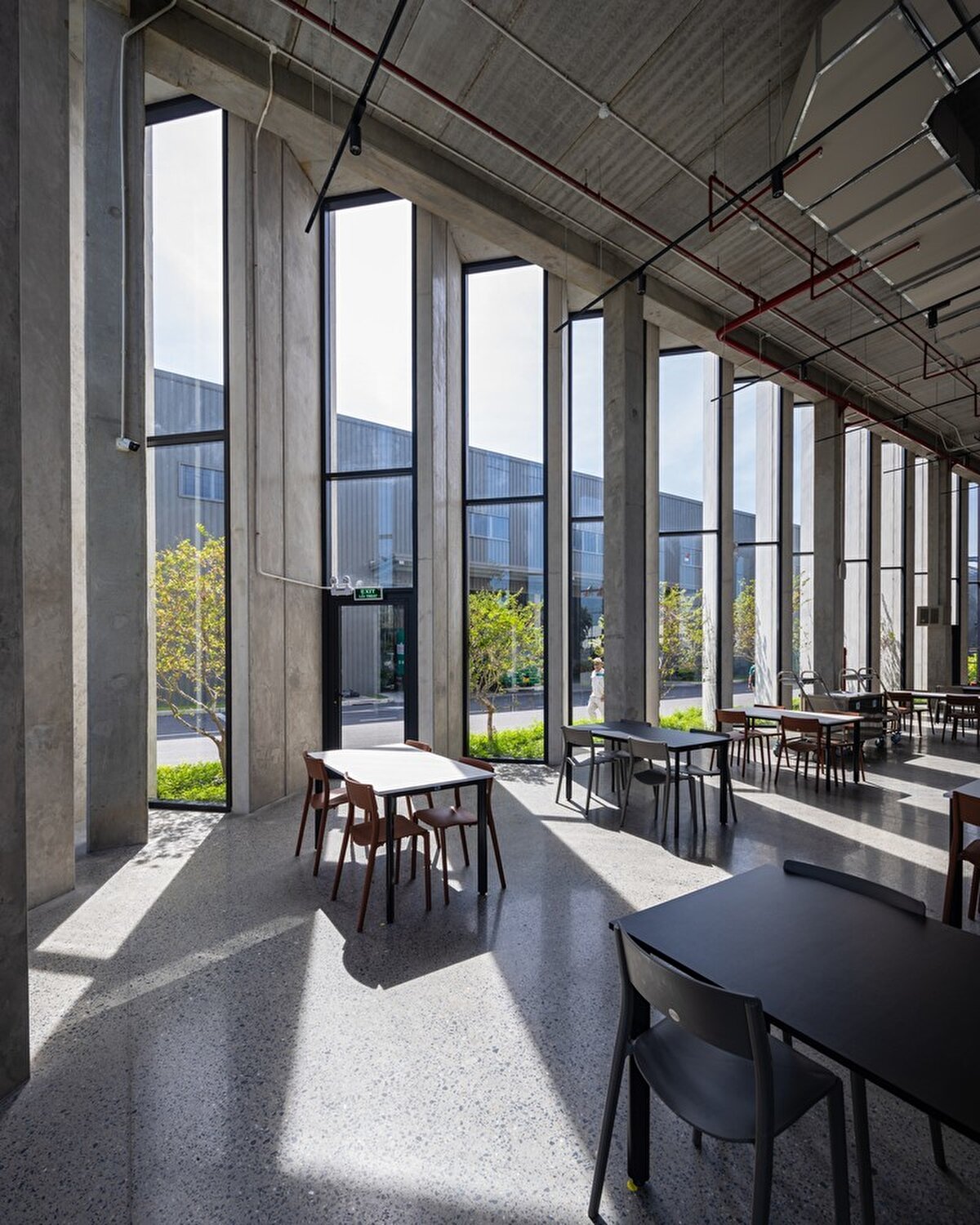 Açık kampüs anlayışıyla tasarlanan fabrika kompleksi, kamusal alanlara öncelik veriyor. İşletme binası, sergi ve eğitim alanları ile ofisleri içeren çok yönlü bir yapıya sahip. Ana salon, ziyaretçilerin şirketin gelişim sürecini keşfedebileceği, ürünlerin tasarım ve üretim aşamalarını inceleyebileceği bir müze niteliğinde tasarlanıyor. Ayrıca fabrika işçileri, ofis çalışanları ve misafirler için kullanılan restoran/kantin, cephe sisteminden süzülen doğal ışıkla aydınlatılıyor.
