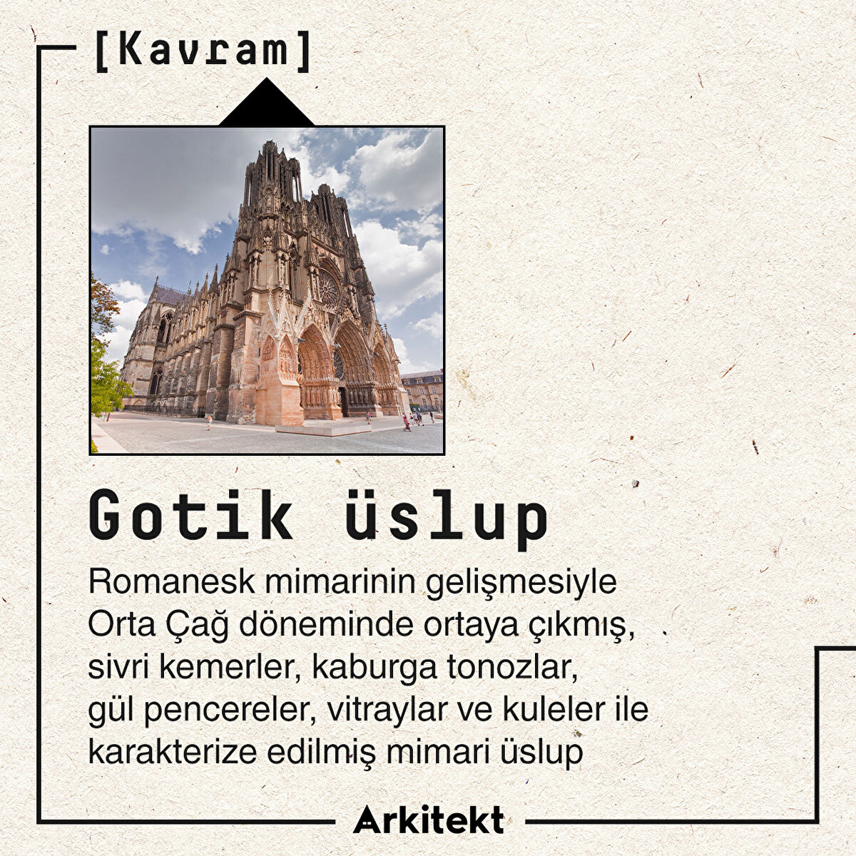 Mimarinin insan üzerinde hakimiyet kurmak için bir araç olarak kullanıldığı bu dönemde, gotik üslup çoğunlukla kilise ve katedral yapılarında karşımıza çıkar.