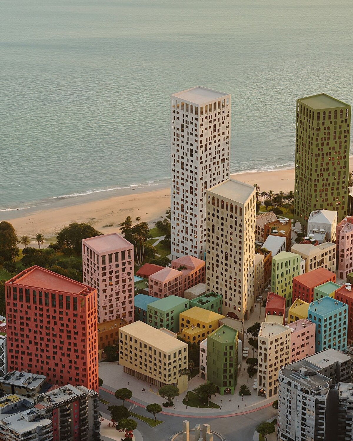 Projenin dikkat çeken bölümlerinden biri, farklı yüksekliklerdeki bloklarla birlikte, pastel tonlarda boyanmış üç renkli kuleden oluşması. Bu kuleler, kıyı manzarasını vurgulayan görsel bir odak noktası oluşturuyor. Kulelerin renkleriyle, çevredeki doğal peyzaj arasında bir kontrast oluşturuluyor. Kuleler arasında planlanan yürüyüş yolları ve kamusal alanlar, sahil boyunca yayaların kullanımına açık olacak şekilde tasarlanıyor.
