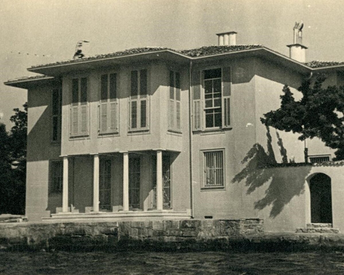 The Ayaşlı Mansion was built by Münevver Ayaşlı in 1938 by architect Sedad Hakkı Eldem in Beylerbeyi, Üsküdar, on the Anatolian side of the Bosphorus. Eldem built this structure on the foundations of an old building with the understanding of modernizing traditional Turkish architecture. The Ayaşlı Mansion, which resembles a traditional Turkish house with its two-fronted sofa layout and carnival plan, becomes one of the important examples of modern Turkish architecture, which Eldem developed by adhering to folk architecture but utilizing contemporary technology. On the upper floor of the two-story building, the sofa opens to the front and back, and the overhangs, illuminated by a vertical window arrangement, are supported by four slender columns. Today, the mansion is converted into a restaurant; the area under the ground floor bay window is covered with canvas and glass balustrades are added; the exterior color is also changed.