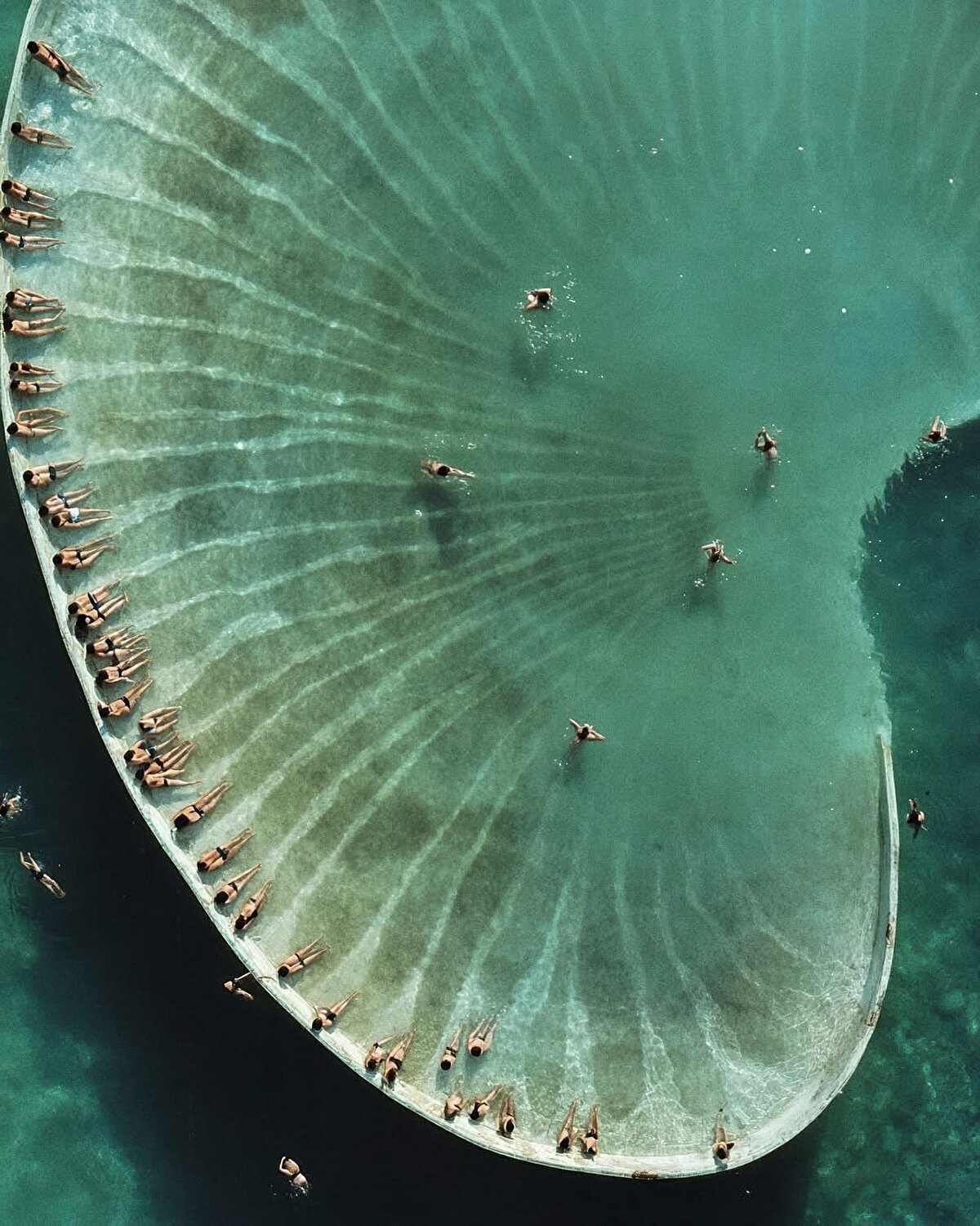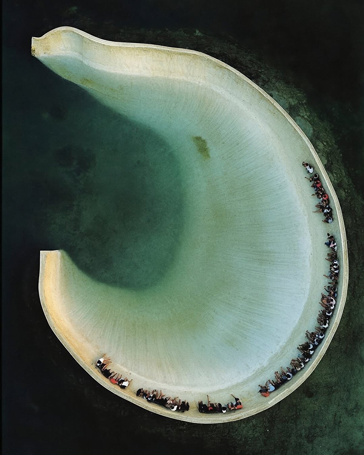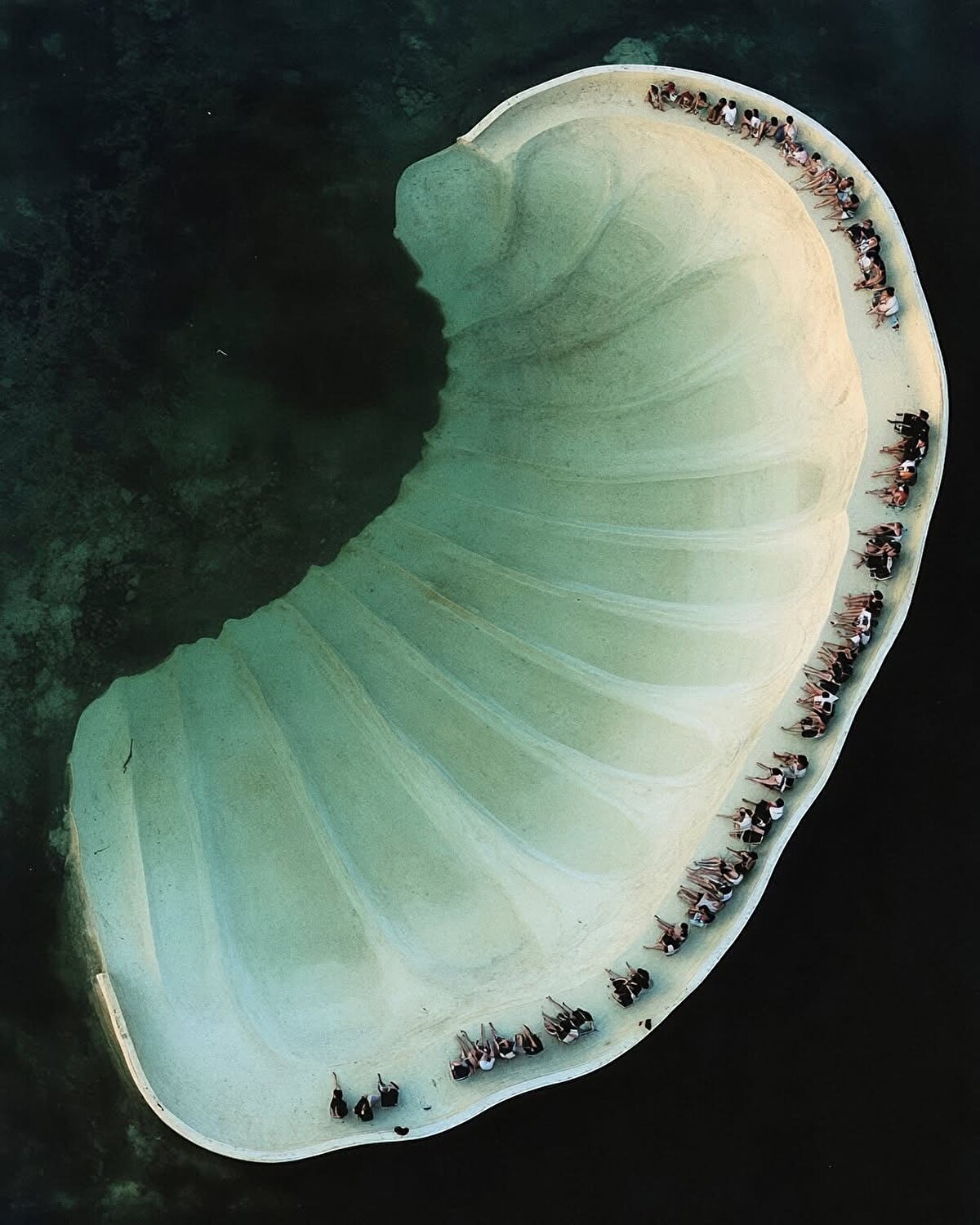 This series, produced by Marius Troy using artificial intelligence, presents fictional structures in shell form. The work aims to reinterpret architectural forms designed as ritual bathing areas through technology.