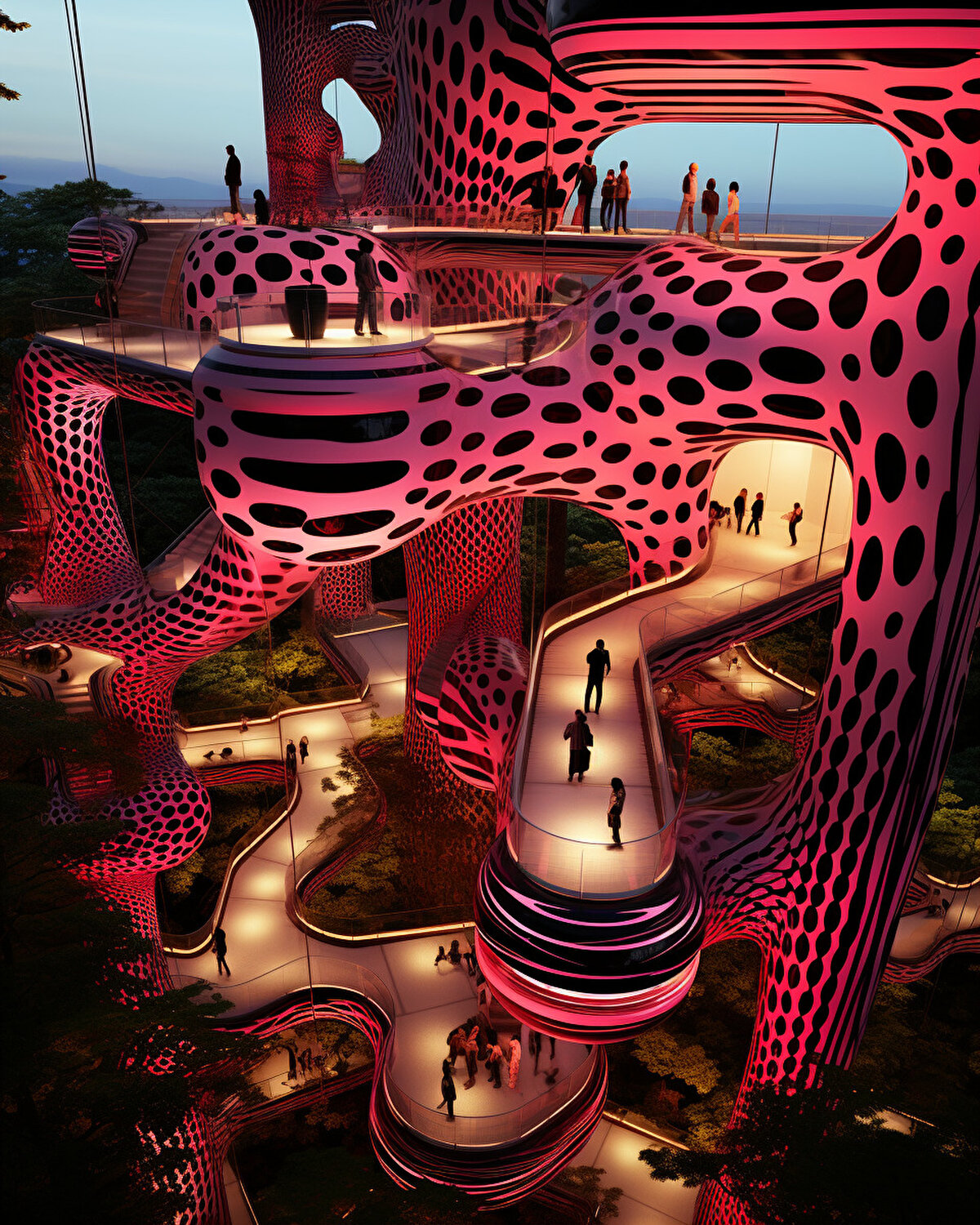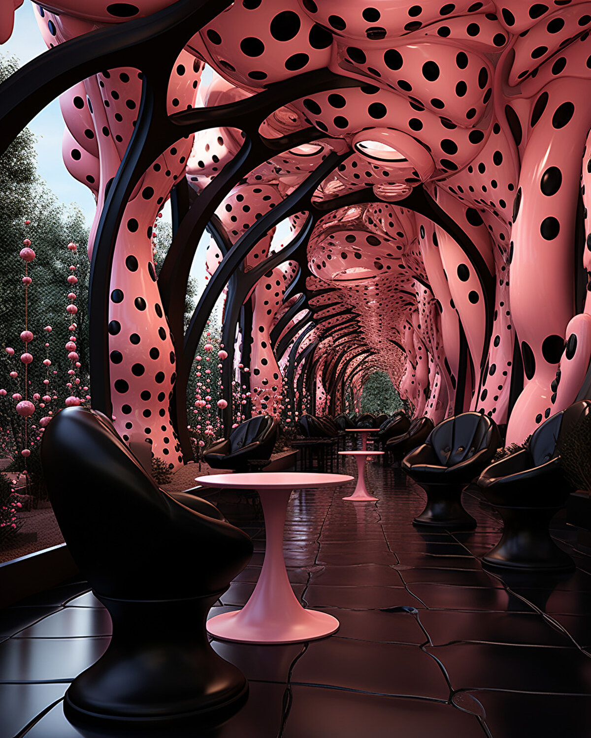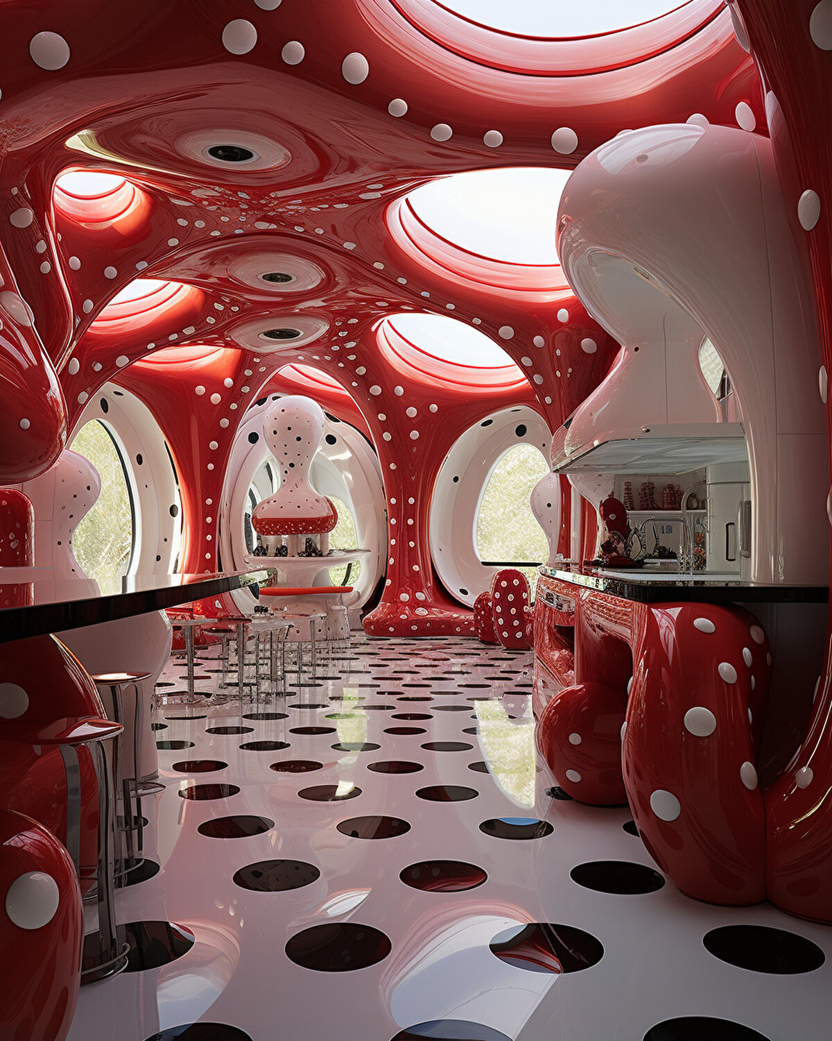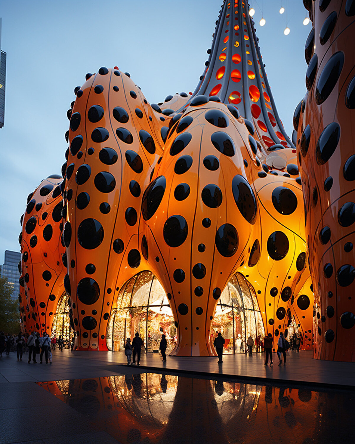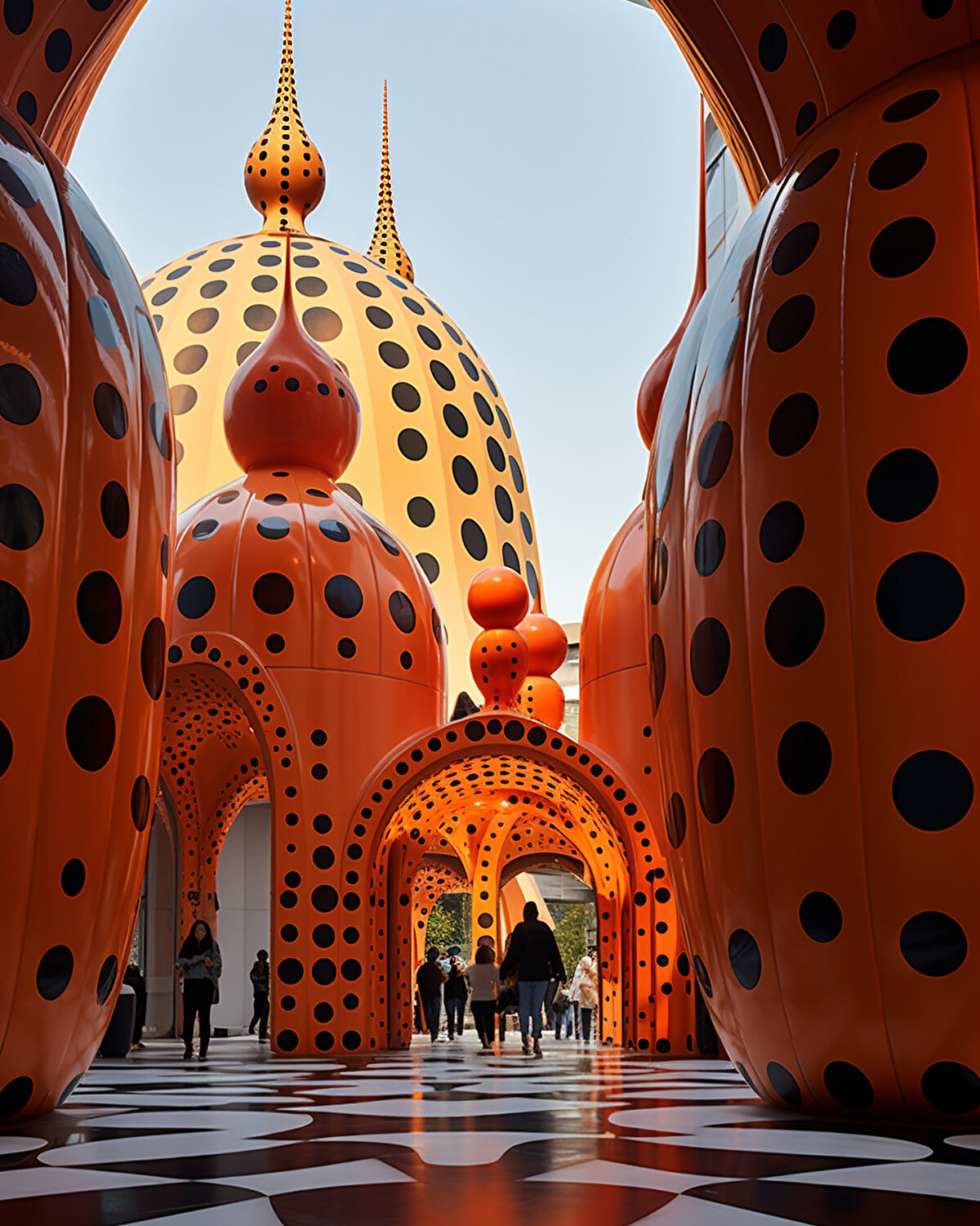 Sanatçı Yayoi Kusama mimar olsaydı nasıl yapılar inşa ederdi? Arkitekt yapay zeka aracılığıyla sizin için tasarladı! Biz bu evrene bayıldık. Sizin favoriniz hangisi oldu?