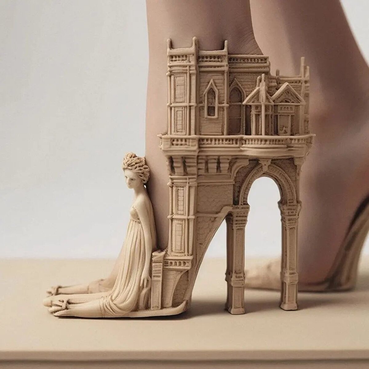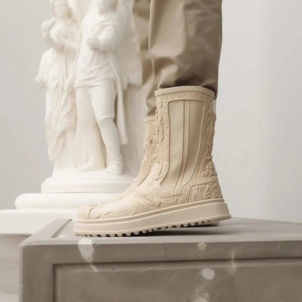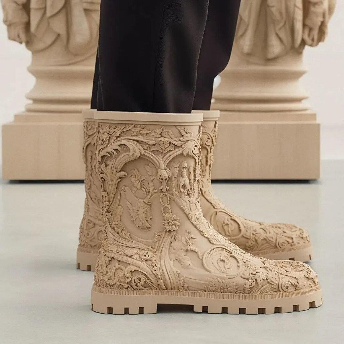Str4ngeThing tarafından tasarlanan ve yapay zeka kullanarak oluşturulan ayakkabı koleksiyonu Rönesans mimarisinden ilham alan tasarımlar sunuyor.