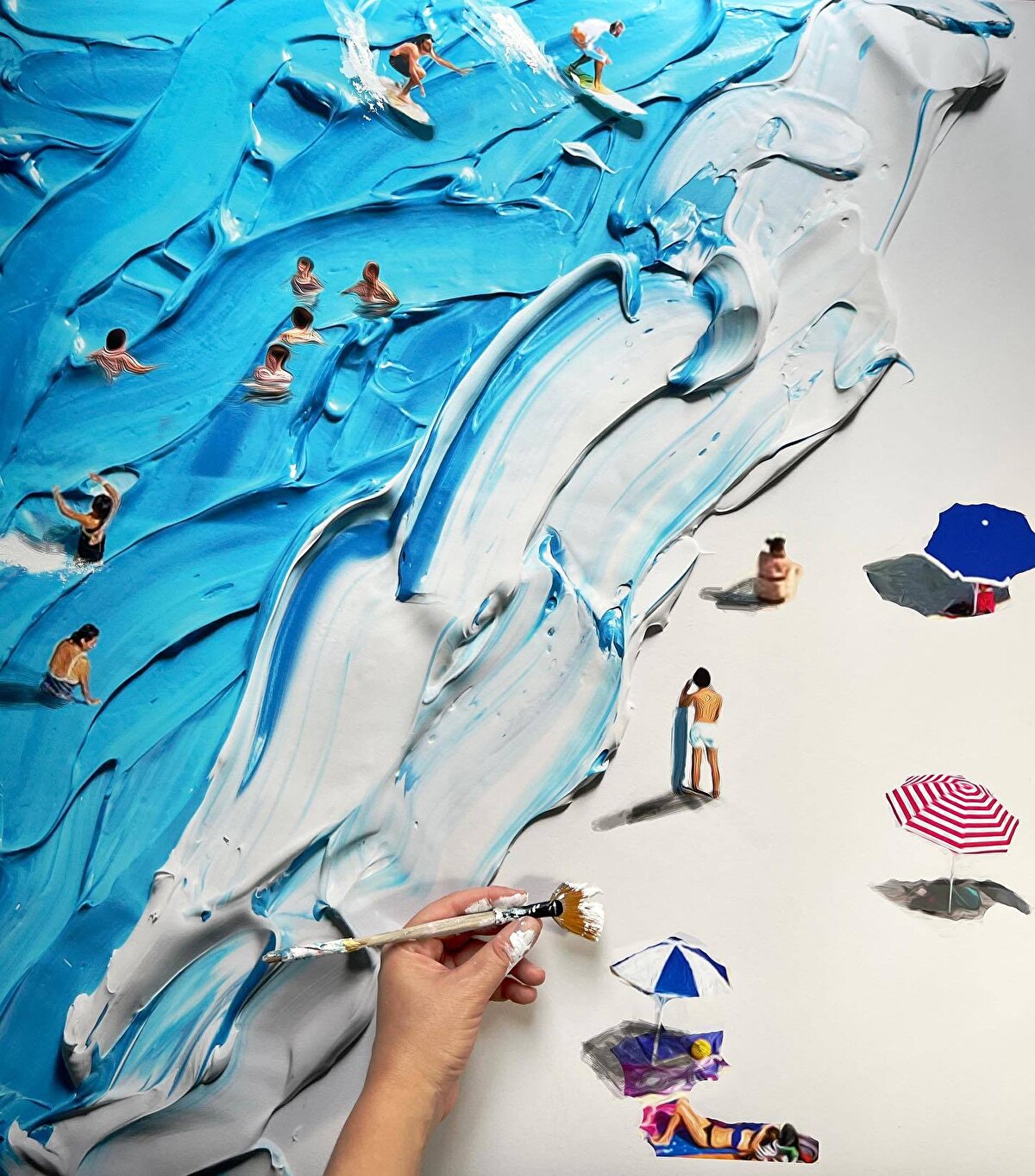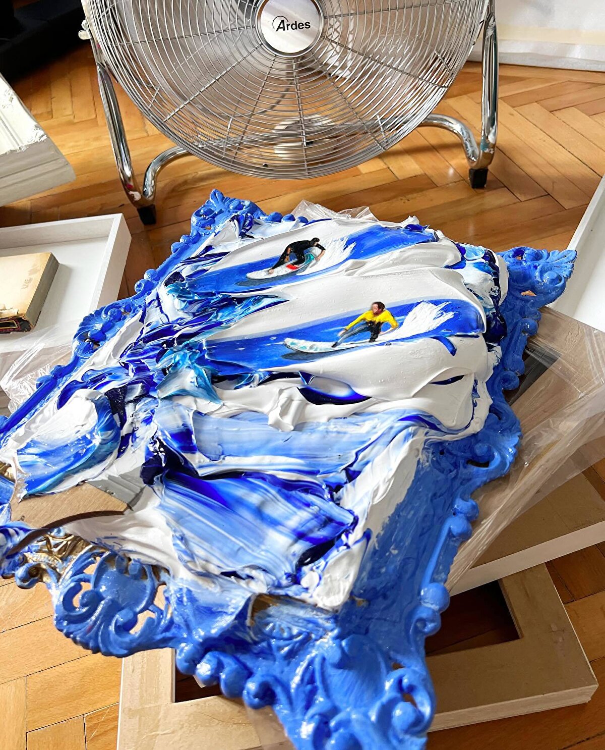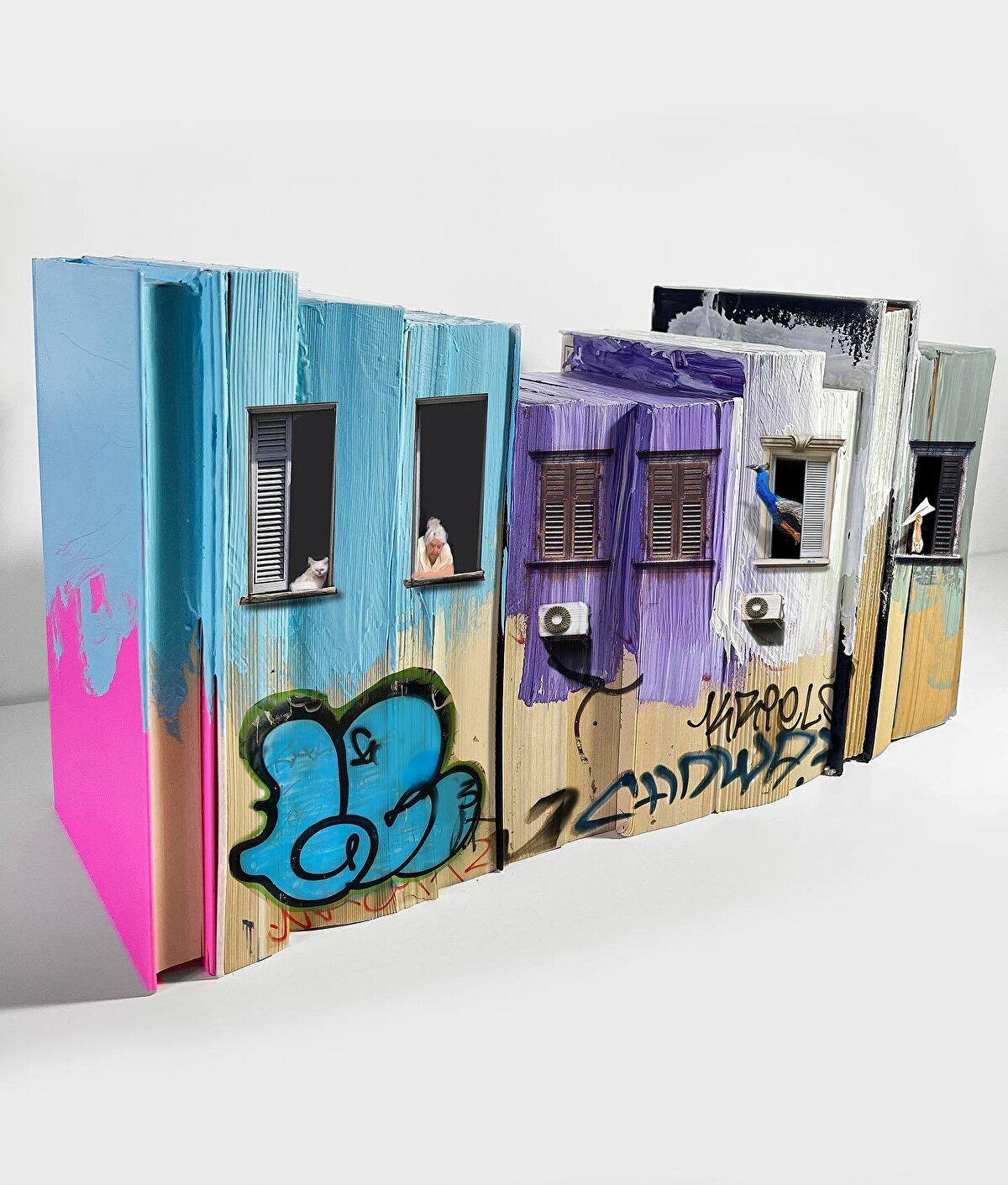 Çalışmalarını 'karmaşık sanat eserleri' olarak tanımlayan sanatçı, tuval olarak farklı malzemeler kullanmayı ve denemeyi tercih ediyor. Bunlar bazen mukavva olurken bazen de madeni para ya da kitap dokusu olabiliyor.