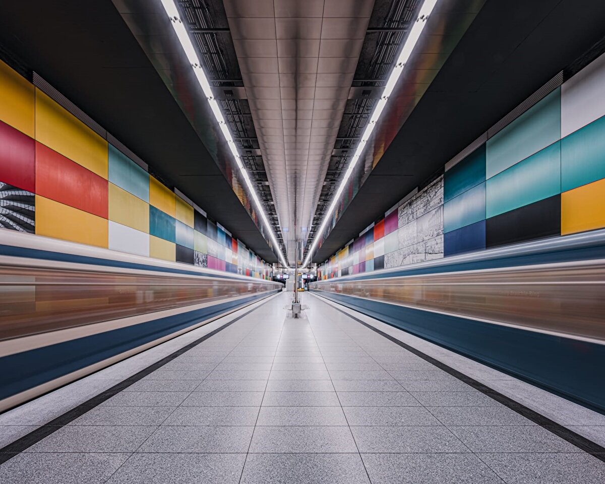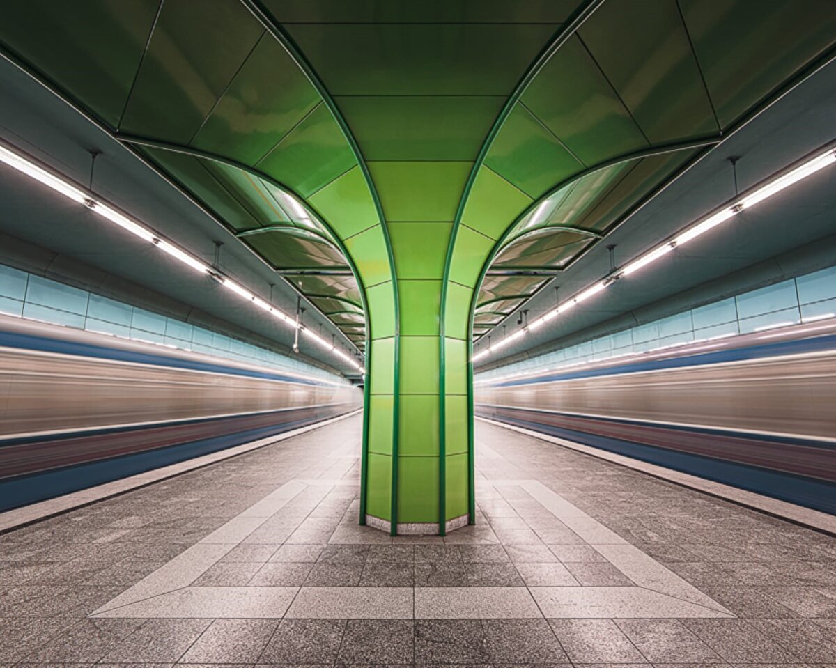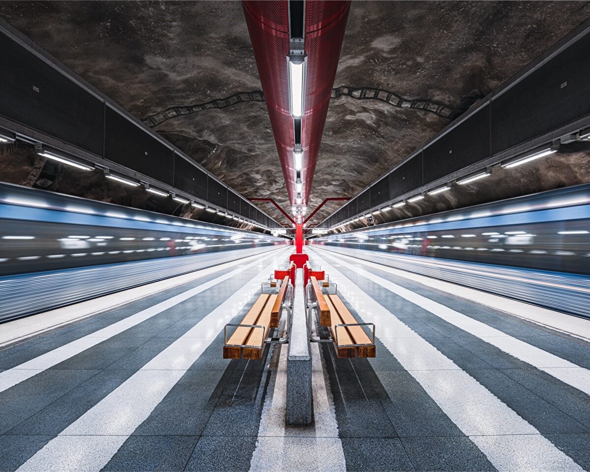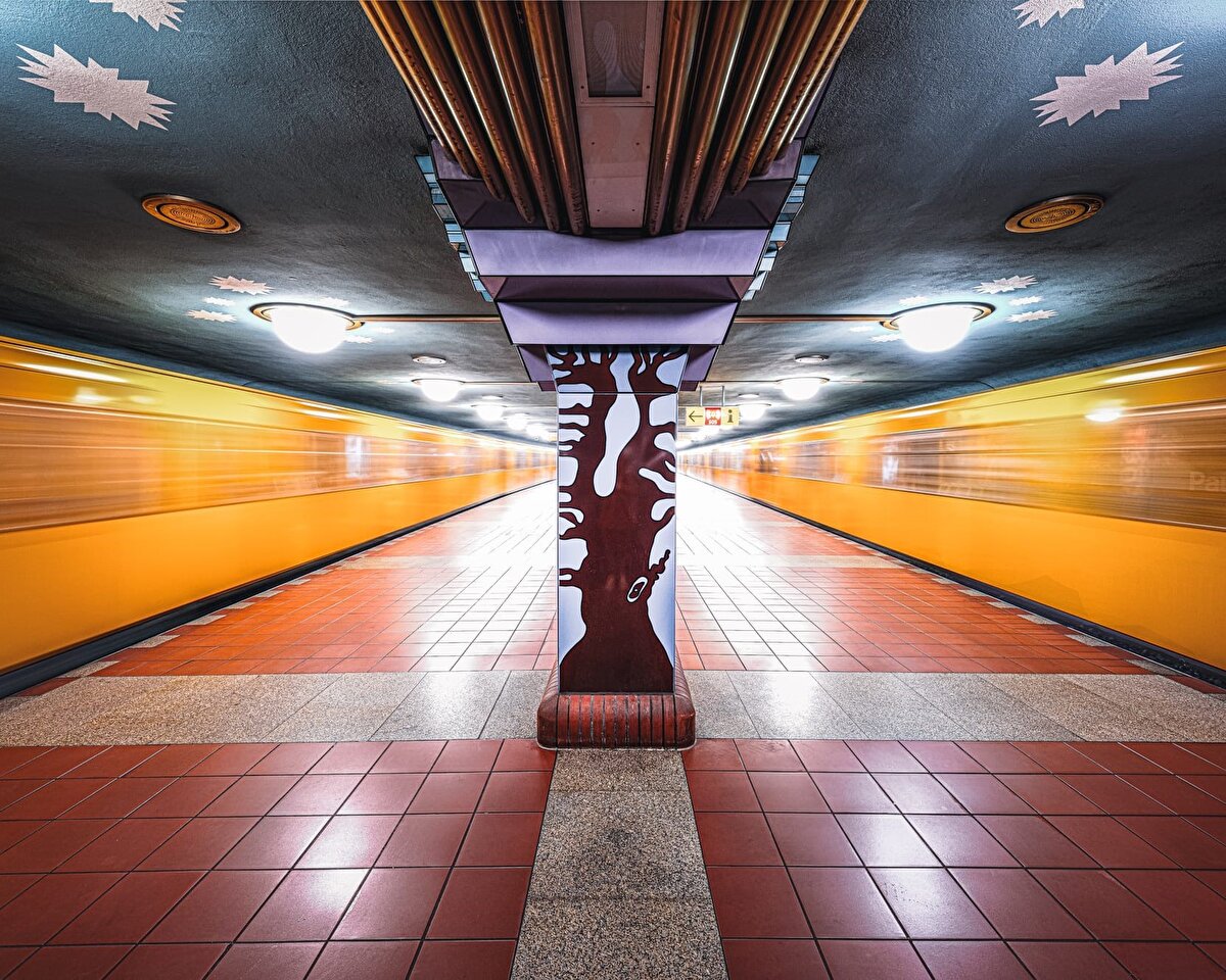 Thibault Drutel, Hamburg'dan Berlin'e, Münih ve Brüksel üzerinden Stockholm'e uzanan, Avrupa metrolarının mimari simetrilerine odaklanıyor. Simetrik Metro adlı çalışmasında, tren geçiş anlarını yakalayarak iç mekânların görsel düzenini ve hareketle kurduğu ilişkiyi araştırıyor.