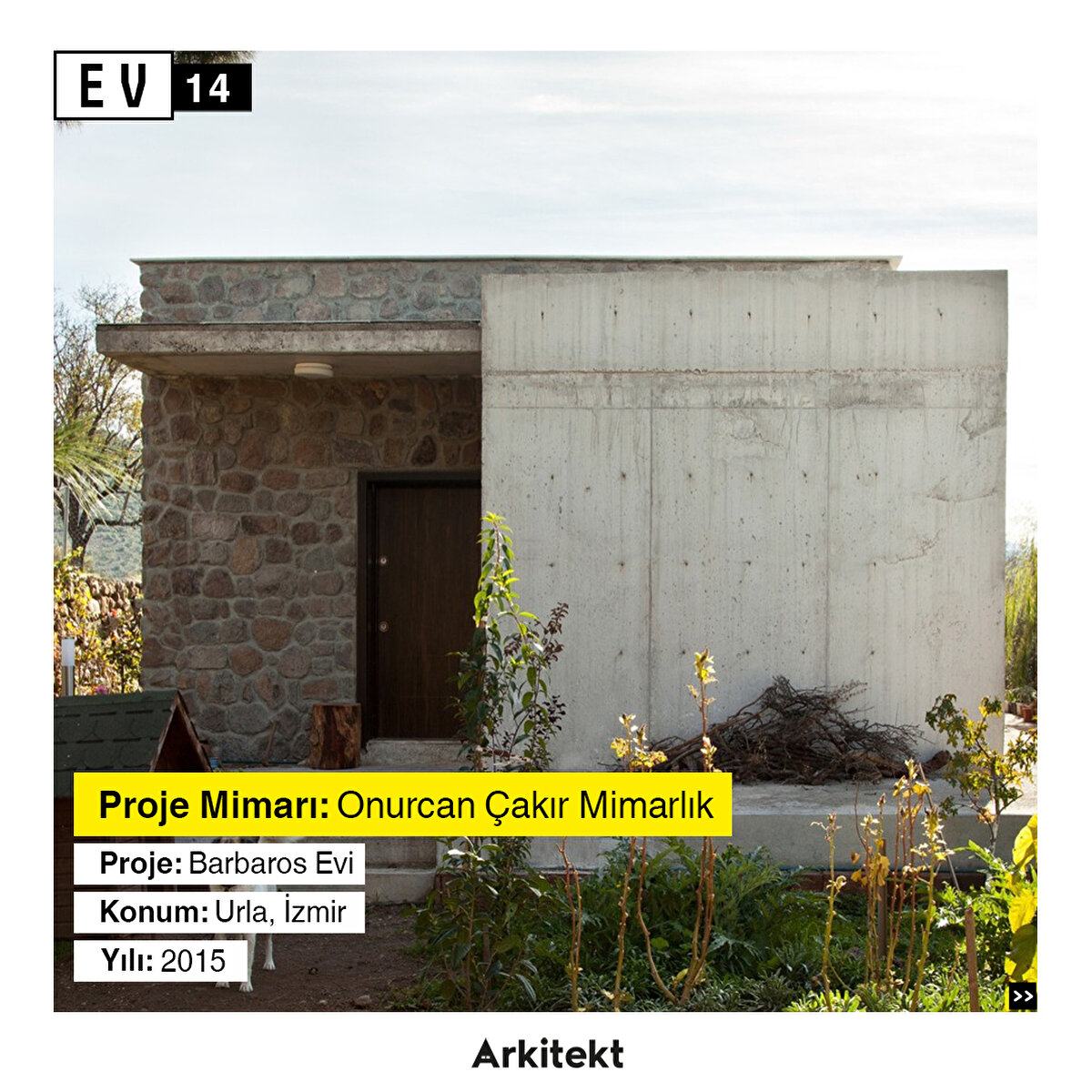 Doğal bir ortamda sessiz bir yaşam alanı elde etmeyi amaçlayan Barbaros Evi'nin strüktürel sisteminde yerel taş ve betonarme kullanıldı.