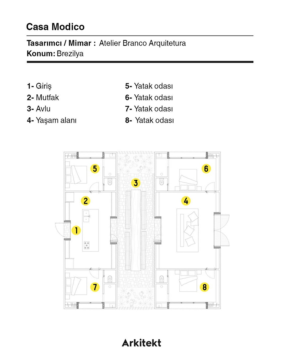Basit bir plan şemasına sahip olan tasarım, ortak ve özel alanlar üzerinden kurgulanıyor.