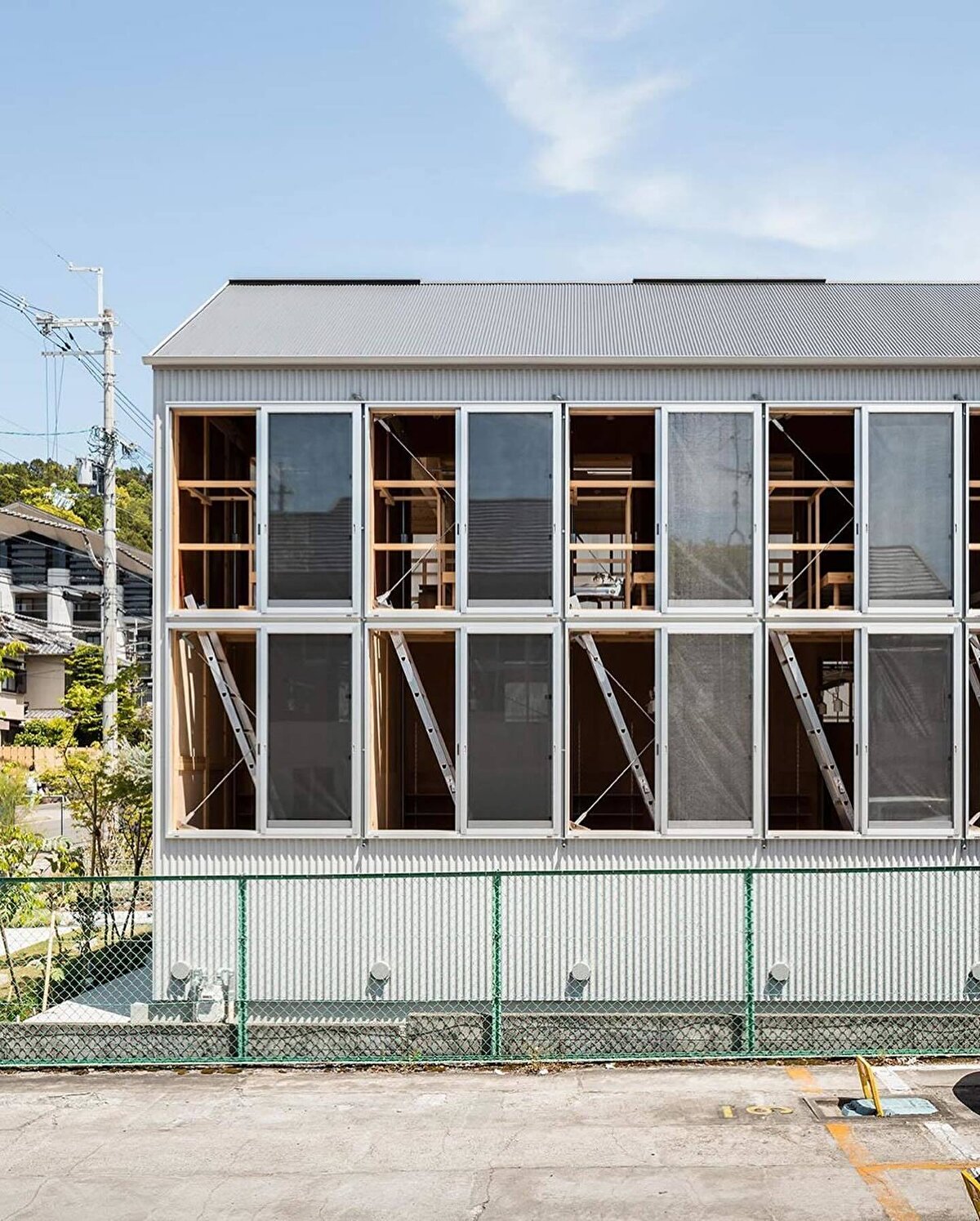 Open Door Apartments is a dormitory-style housing complex designed and constructed in Kyoto in 2019 through a collaboration between Ippei Komatsu Architects and Kimuramatsumoto Architects.