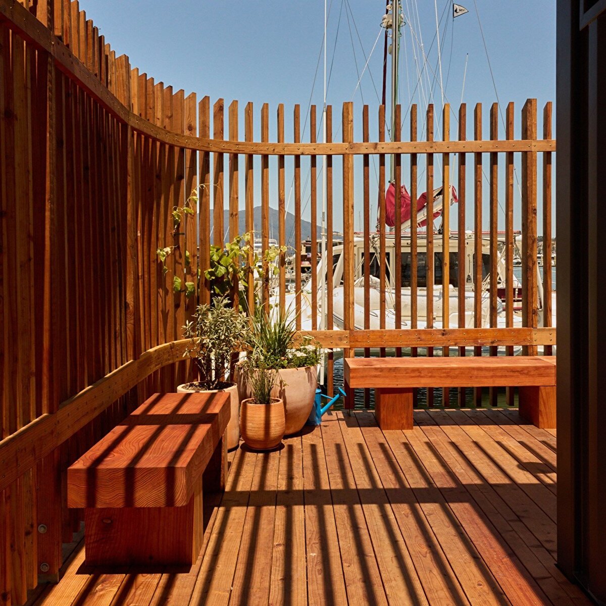 Kaliforniyalı mimar Nick Polansky tarafından tasarlanan Fjord adlı proje, San Francisco Körfezi'nde eski bir dalga kıran üzerine inşa edilmiş bir yüzen sauna yapısıdır. Temelinde 2013 Amerika Kupası sırasında kullanılan beton bir platform yer alıyor. Bu platformun üzerine, geri dönüştürülmüş iki adet nakliye konteyneri yerleştiriliyor ve dış yüzeyleri bölgeye özgü sekoya ağacıyla kaplanıyor. İç mekanlar geleneksel Fin saunası prensiplerine göre düzenleniyor, her iki konteynerin içinde yaklaşık 88 °C sıcaklığa ulaşabilen soba sistemleri yerleştiriliyor. Saunalardan doğrudan körfeze ulaşılabilen bir soğuk su alanı da projeye entegre ediliyor. Kullanıcılar sauna sonrası denize girerek soğuk dalış yapabiliyor. Yapının çevresinde oturma alanları, gölgelikler ve küçük soyunma bölmeleri bulunuyor.