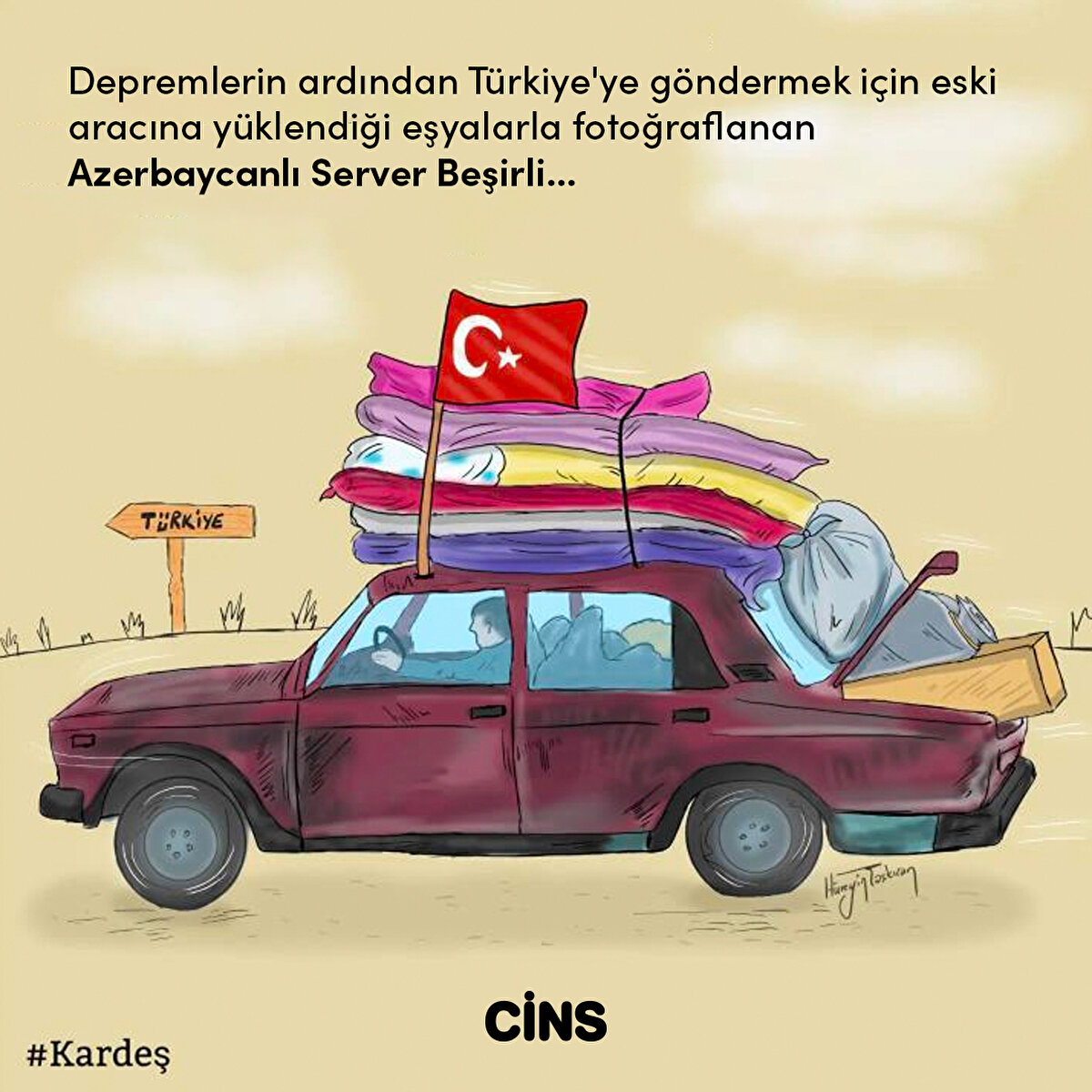 Depremden sonra tüm Türkiye seferber oldu... Bu anlardan bazılarını Hüseyin Taşkıran çizdi.