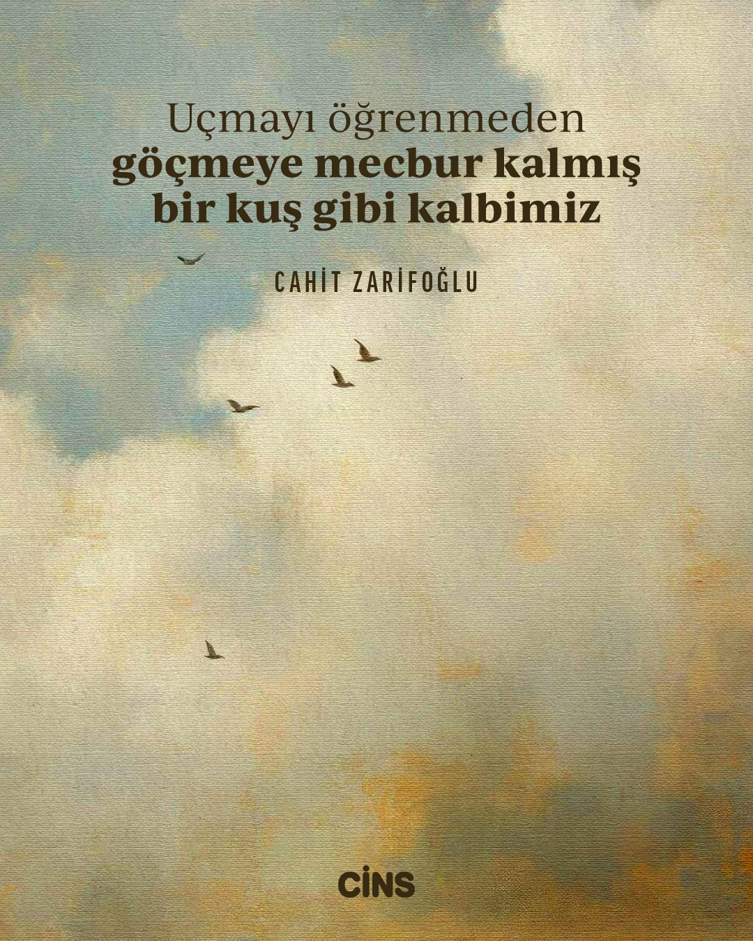 Cahit Zarifoğlu'nun “uçmayı öğrenmeden göçmeye mecbur kalmış bir kuş gibi kalbimiz” dizeleri, insanın içsel yolculuğuna dair en güçlü imgelerden birini kuruyor. Göç, yalnızca mekân değiştirmek değildir; kimi zaman bir insanın kendini yeniden bulmak için terk ettiği duyguların, düşüncelerin, alışkanlıkların adıdır. Uçmayı bilmeden göçe kalkışan kalbin kırılganlığı ise modern insanın en görünmez yaralarından biridir. Hayatın hızına yetişemeyen ruh, çoğu zaman yönünü bilmeden hareket eder; tıpkı sürüden kopmamak için havalanan bir kuş gibi. Zarifoğlu, bu dizeleriyle bize hem kalbimizin cesaretini hem de çaresizliğini gösteriyor. Belki de her göç, kendi kanadımızı tanımanın ilk adımıdır.