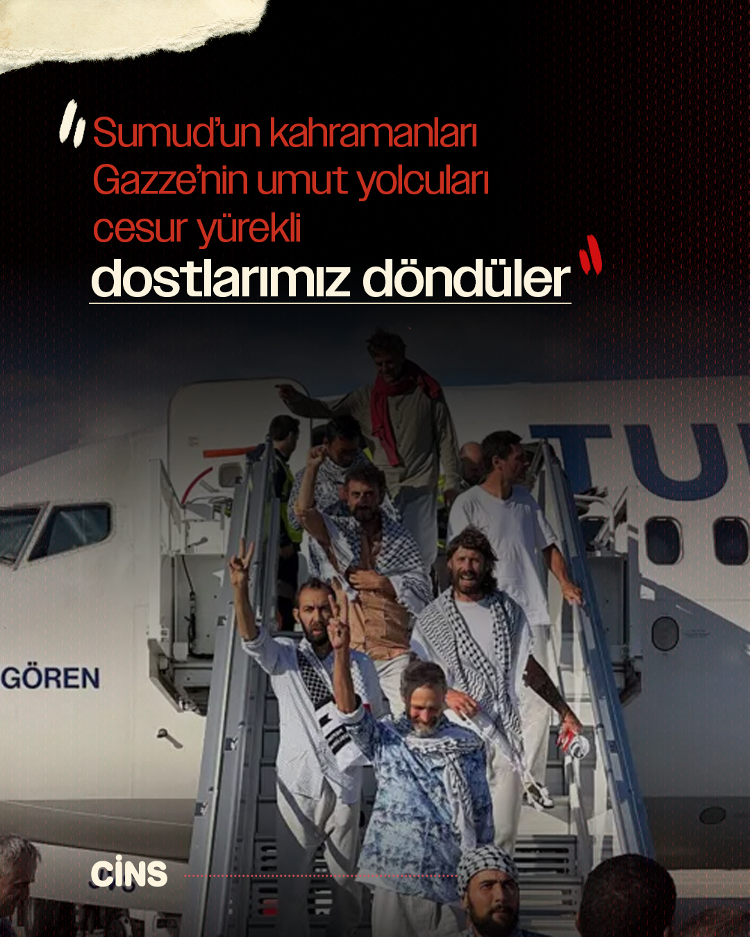 Gazze'ye insani yardım ulaştırmak ve yıllardır süren ablukayı kırmak amacıyla yola çıkan Sumud Filosu'ndan 36'sı Türk olmak üzere 137 kişi, İstanbul'a döndü. Günlerce süren zorlu yolculukları ve İsrail hapishanelerinde geçirdikleri günlerin ardından yurda ulaşan gönüllüler, yalnızca bir yardım misyonunu değil, insanlığın ortak vicdanını da temsil ettiler. Filo, Akdeniz'de barışın, dayanışmanın ve direnişin sembolü hâline gelirken, geride hâlâ İsrail tarafından alıkonulan 15 gönüllü bulunuyor. Onların isimleri, Gazze'ye ulaşamayan umutların ve yarım kalan duaların sesi olarak hafızalarda yer etti. Sumud'un yolculuğu, bir seferin değil; insanlığın onurlu mücadelesinin hikâyesidir.
