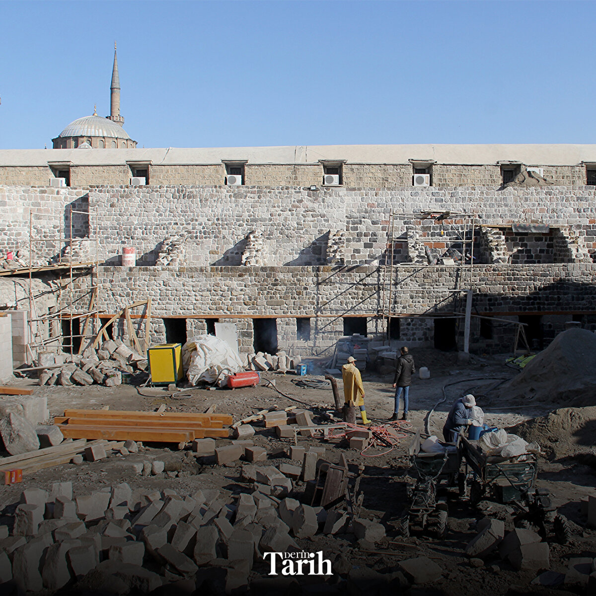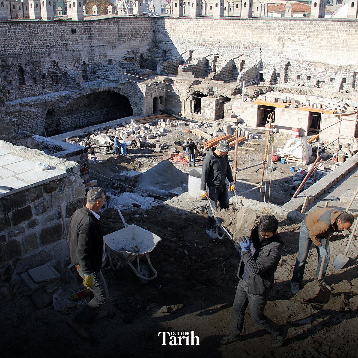 Kayseri'deki tarihi Gök Han'da 2 yıldır devam eden restorasyon çalışmalarının sona ermesine çok az kaldı. Yavuz Sultan Selim zamanında Sadrazam Piri Mehmet Paşa tarafından 1519'da yaptırılan ve Kayseri Kapalı Çarşı'da yer alan Gök Han, uzun yıllar tarihi İpek Yolu üzerinde kervanlara konaklama hizmeti vermişti.Fotoğraf: AA 📸