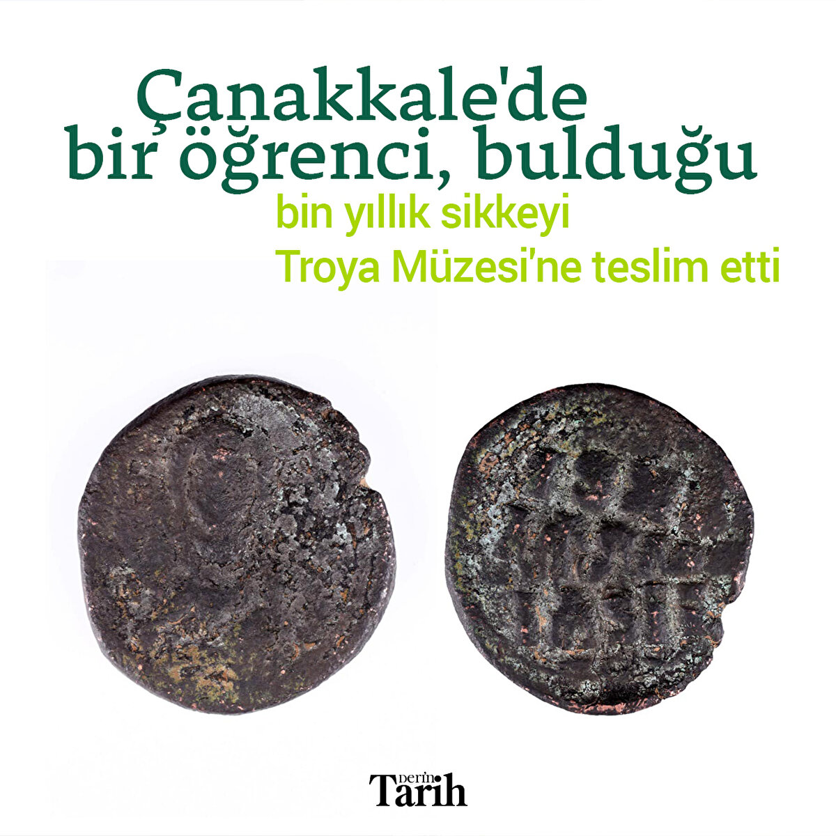 Çanakkaleli ortaokul öğrencisi Balıkesir'de gezerken yerde bulduğu Doğu Roma İmparatorluğu Dönemi'ne ait yaklaşık 1000 yıllık sikkeyi Troya Müzesi'ne teslim etti. Müze Müdürü Rıdvan Gölcük, öğrenci Islak ve öğretmeni Özdinç'e gösterdikleri duyarlılıktan dolayı teşekkür etti.