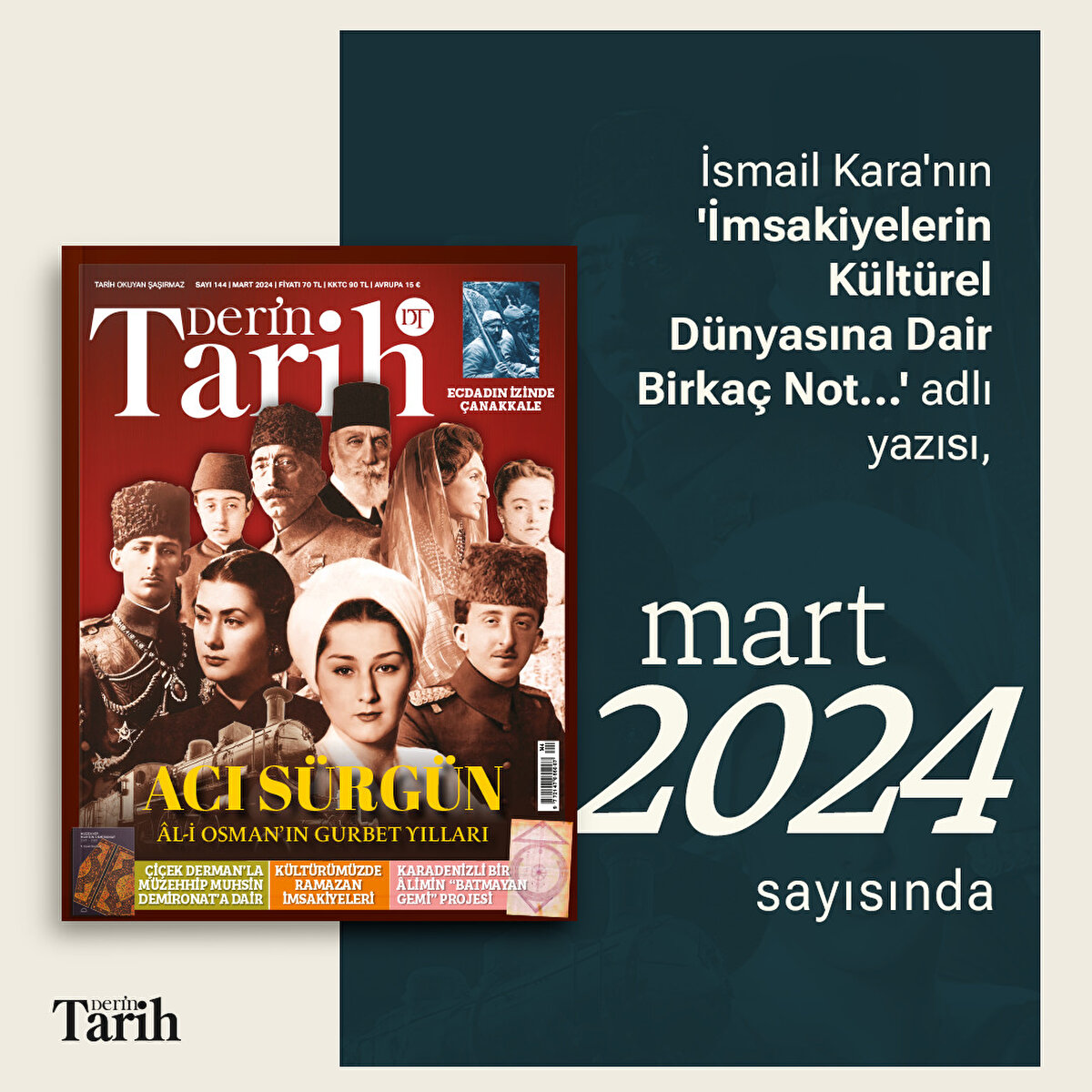 İmsakiyelerin tarihine dair bilinmeyenler Derin Tarih'in Mart 2024 sayısında.