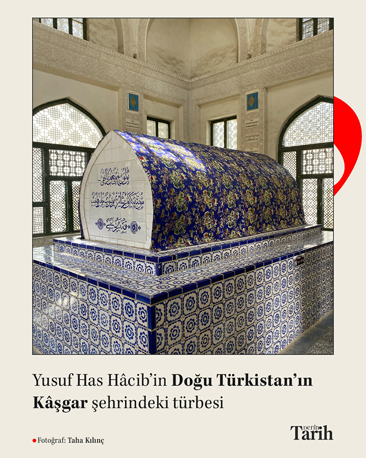Türk edebiyatının en eski eserlerinden Kutadgu Bilig'in müellifi olan ve 1077 yılında vefat eden Yusuf Has Hacib'in türbesi, Kaşgar'da yer alıyor. Meşhur Kutadgu Bilig'i Doğu Karahanlı hükümdarı ve Kaşgar Prensi Tabgaç Uluğ Buğra Kara Han'a (Ebû Ali Hasan bin Süleyman Arslan) atfen yazdı ve takdim etti. Eser, Karahanlıca olarak da isimlendirilen Hakaniye lehçesi ile yazılmıştı. Yusuf Has Hâcib (Balasagunlu Yusuf) hakkındaki bilgilerin tek kaynağı, yine kendi eserine sonradan eklenmiş olan manzûm ve mensûr mukaddimelerdir. Yusuf, XI. yüzyılda, Balasagun (Kuz-Ordu)'da doğmuştur. Asil bir aileye mensup olup, ilmi, fazîletleri, zühd ve takvası ile cemiyetin içinde en yüksek hizmet mertebesine ermiş bir zattır. Eserine Balasagun'da başlamış, daha sonra gittiği Kaşgar'da tamamlamış (1069-1070) ve Karahanlı hükümdarı Tabgaç Kara Buğra hânlar hânının huzurunda okumuştur. Hâkan, şâirin kalem kudretini takdir ederek, ona iltifat etmiş ve yanına alarak, ona “has hâcib” unvanını vermiştir. Bundan dolayı nâmı Yusuf Has Hâcib olarak yayılmıştır. Üzerinde 18 ay uğraştığı eserinin bazı beyitlerinde (365-371) 50 yaşında olduğunu belirtmektedir. Bu beyitlerden hareketle O'nun 1019 yılı civarında doğduğunu söyleyebiliriz. Ölümü hakkında herhangi bir bilgi yoktur. Eserin ilave kısmında kendisinden bahsederken, ihtiyarladığını, hayatını insanlara hizmet etmekle geçirerek ibâdete geç kaldığını belirtmektedir