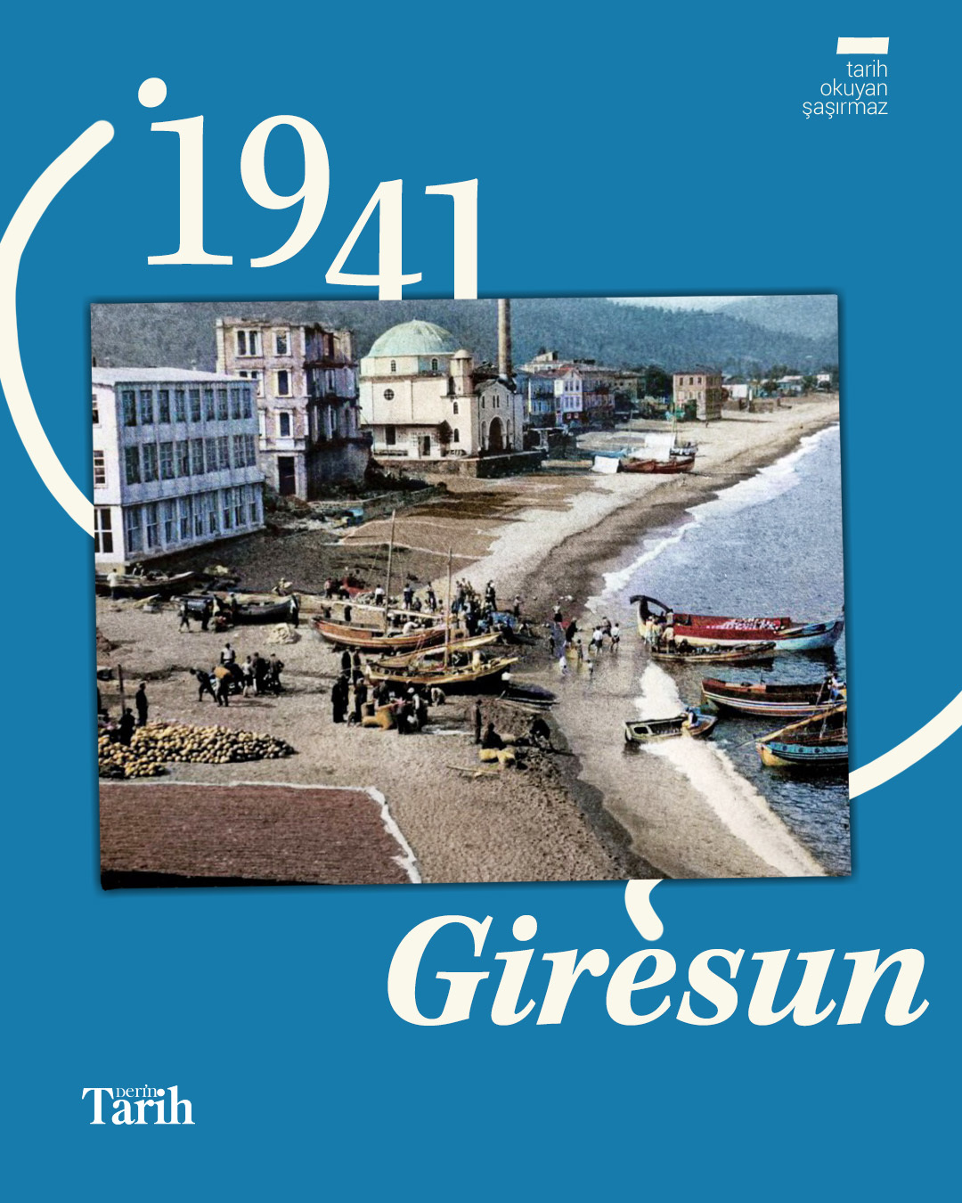 1941 yılında Giresun sahilinde fındık harmanı ve balıkçı teknelerinin başındaki insanlar