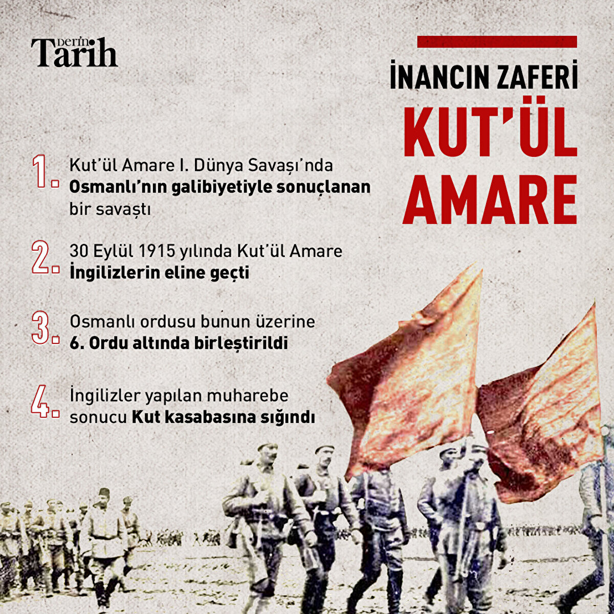 Kut'ül Amare Savaşı, Irak Cephesi'nde Türk Ordusu'nun destansı mücadelesi sonucu kazanılan önemli bir savaştı. Çanakkale Savaşı'ndan sonraki en önemli zafer olarak değerlendirilen zafer, yıllar geçse de hatırlanıyor.