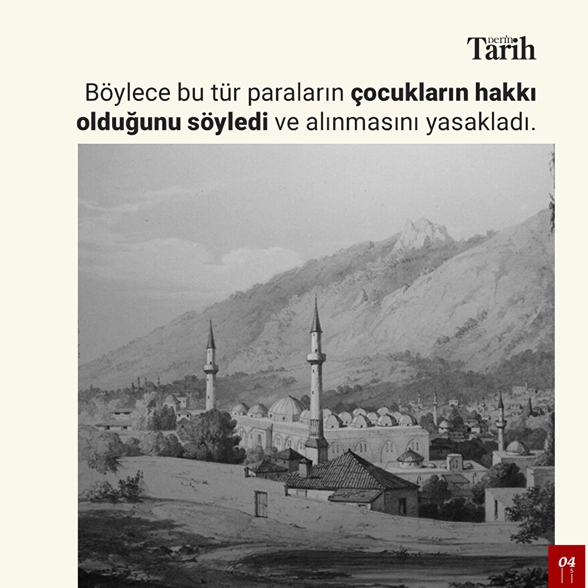 Bir gün halka maddî yardım yapıldığı bir sırada, dağıtılacak para içerisinde delikli akçeler gören Orhan Gazi, bu paraların nereden geldiğini sormuş, görevli şahıs da bunların reayadan alınan öşür ve cizye mallarından çıktığını söylemişti. Bunun üzerine Orhan Gazi, bu paraların gayrimüslim ailelerinde çocuklara iple bağlanan hediye paralar olabileceğini düşünmüş, bu yüzden çocuklar için değerlendirilmesi gerektiğinin daha uygun olduğuna inanarak bu tür paraların alınmasını yasaklamıştı.