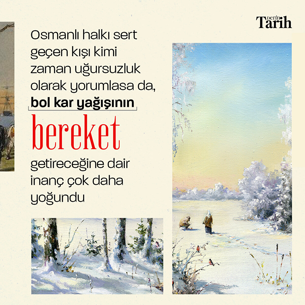 Osmanlı halkı sert geçen kışı kimi zaman uğursuzluk olarak yorumlasa da, bol kar yağışının bereket getireceğine dair inanç çok daha yoğundu.