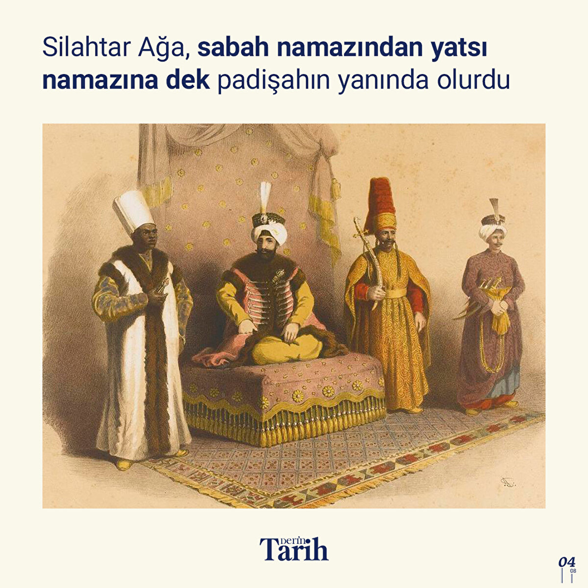 Silahtar Ağa, Osmanlı'da Enderûn'un en nüfuzlu ismiydi. Saray kurallarına göre has oda ağalarının en kıdemlisi, silahtar ağa seçilirdi. Padişahın ve sarayın tüm silahlarının sorumluluğu Silahtar Ağa'da idi.