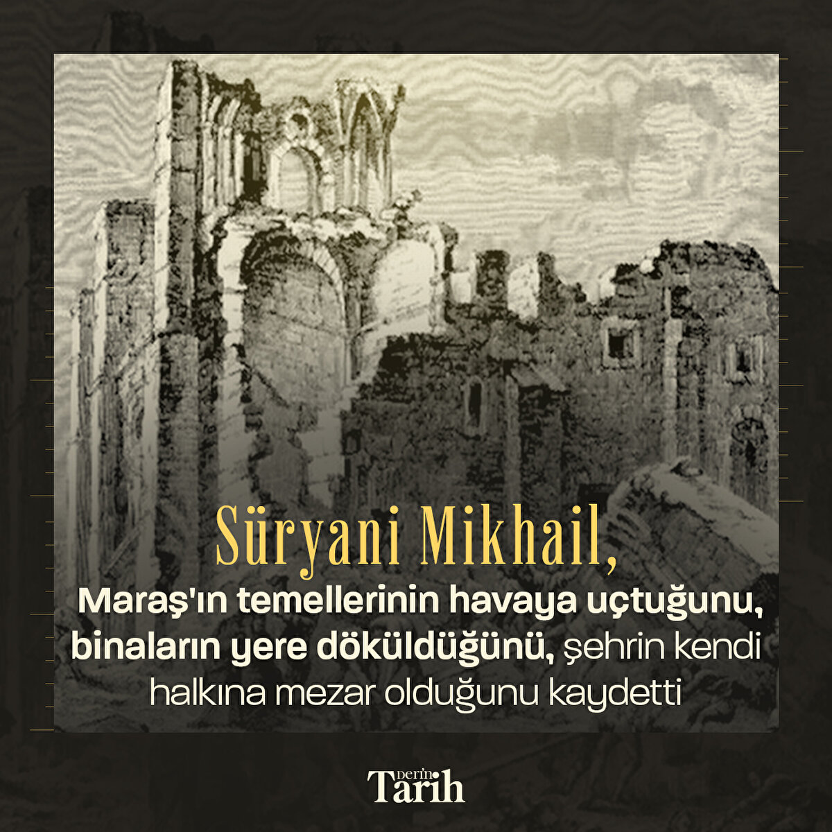 Tam 909 yıl önce bugün, Maraş'ta büyük bir deprem meydana geldi. Binlerce insanın hayatını kaybettiği bu yıkımı Süryani Mikhail ve Edessalı Mateos eserlerinde anlattılar.