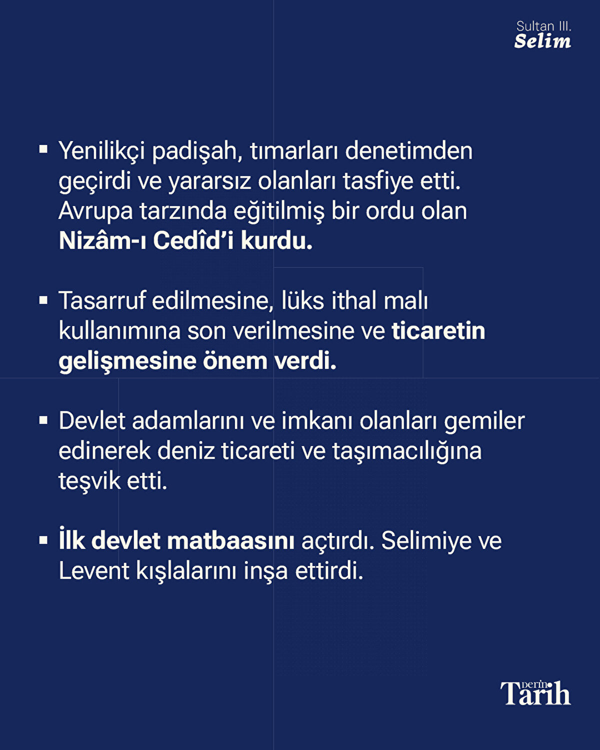 I. Abdülhamid'in vefatından sonra III. Selim tahta çıktı. Avrupa kurumlarının üstünlüğü ve örnek alınmasındaki zaruret daha önce de dile getirilmekle beraber III. Selim bunu ilk defa açıkça ifade etmiş ve geniş çapta uygulamaya sokmuştur.