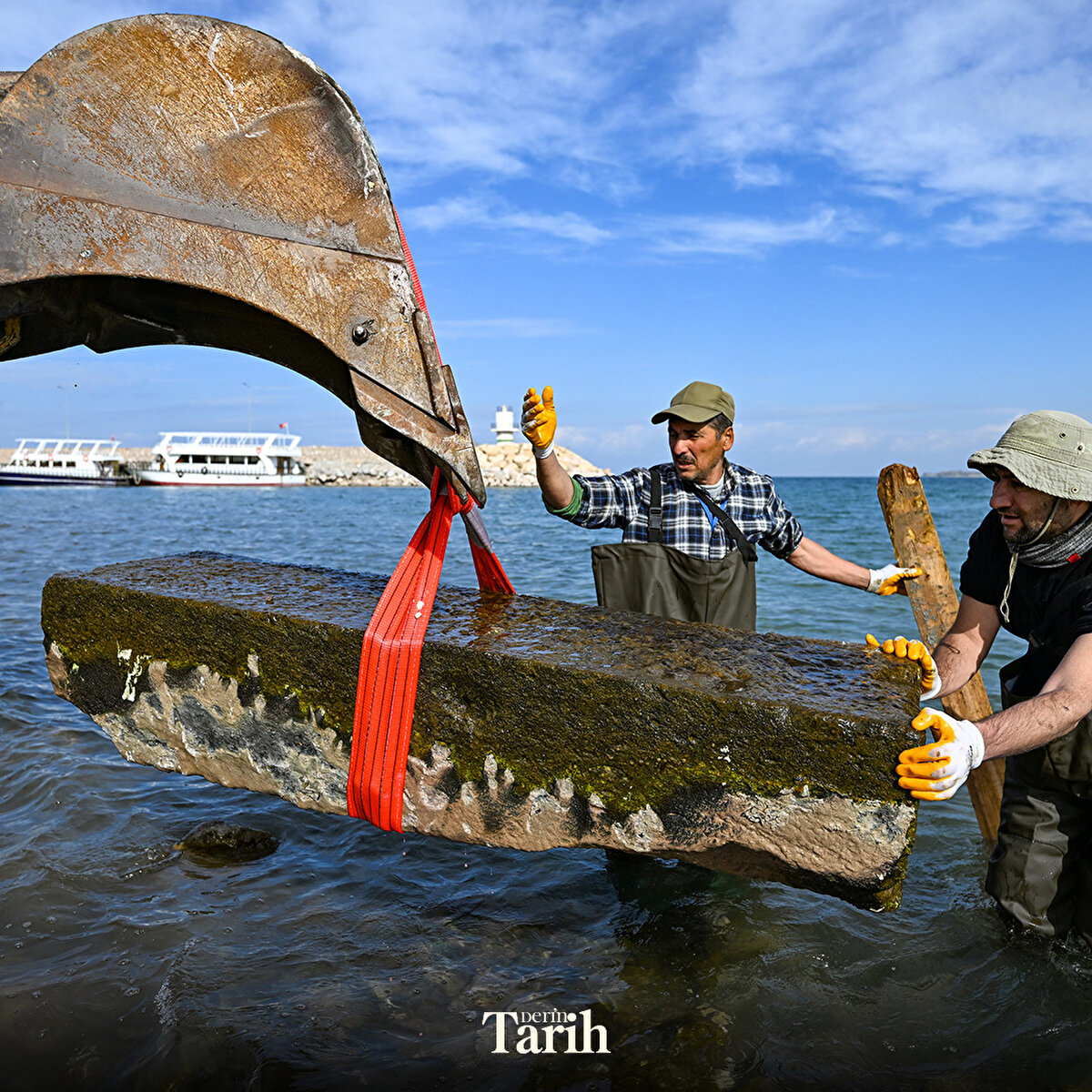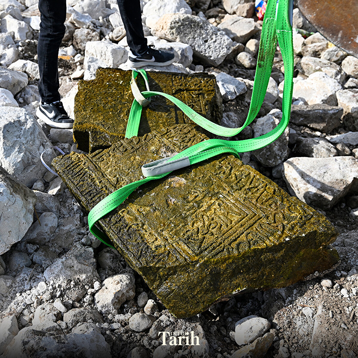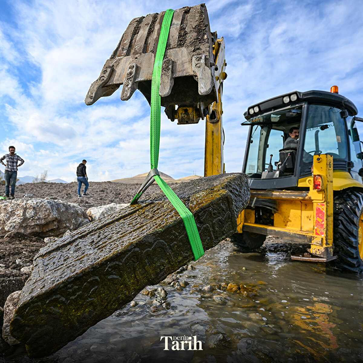 Yağışların azalması ve aşırı buharlaşma sonucu seviyesi düşen Van Gölü'nün kıyı kesimlerinde ortaya çıkan Selçuklu dönemine ait tarihi mezar taşları koruma altına alındı.