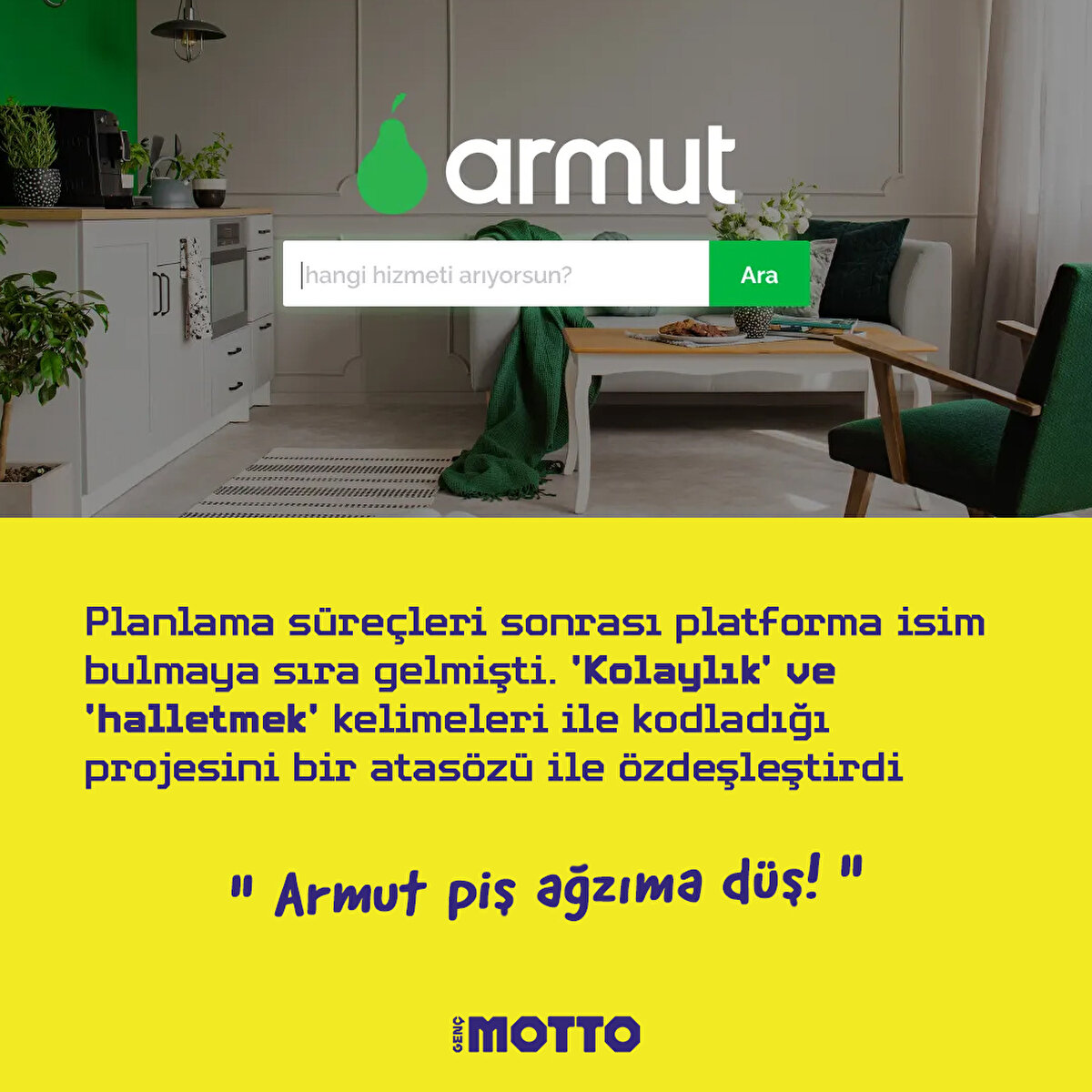 Başak Taşpınar Değim... Türkiye'nin en başarılı girişimlerinden biri olarak kabul edilen Armut'un fikir sahibi. Her şey onun bir gün evini taşıma kararı almasıyla başladı. Tamirattan, tadilata, taşımacılıktan, boyaya kadar birçok alanda uzman isimleri bulması gerekiyordu ama hepsi için ayrı ayrı aramalar yapıyordu. O anda beyninde şimşekler çaktı, ve şunu dedi: "Neden bütün bu hizmetler tek çatı altında bulunamıyor?" Ona gelen bu ilhamla sıfırdan başlayan Armut sitesi, şu anda 350 milyon liralık bir hizmet talebi ile karşı karşıya. 11 yılda sitenin 7000 kat büyüdüğünü de belirtmemiz gerek