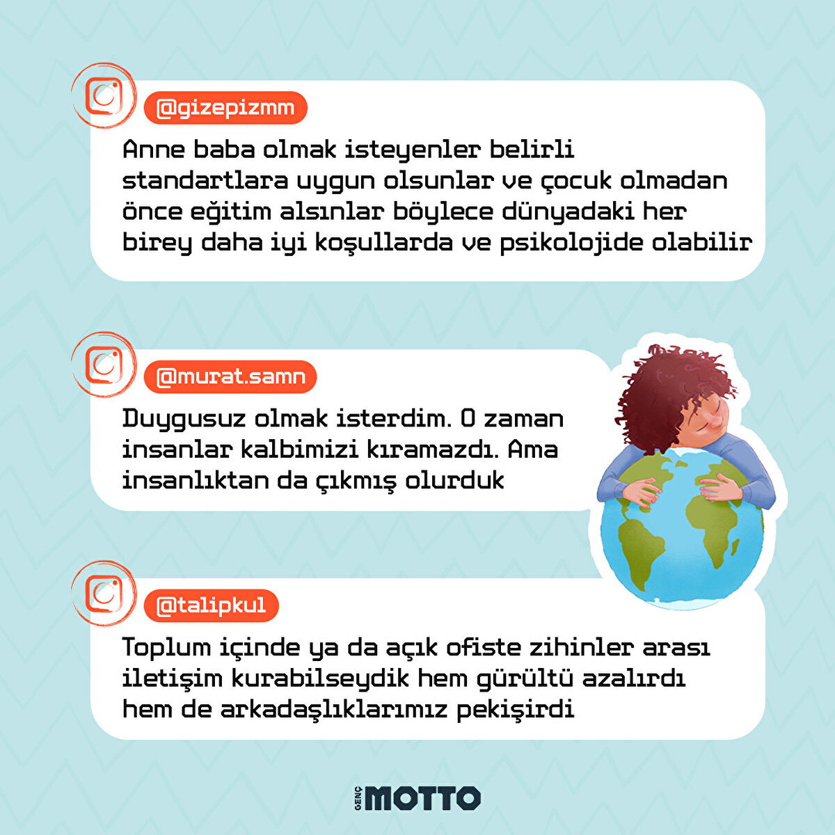 Dünyayı değiştirecek bir şey olsaydı neyin olmasını isterdiniz?
