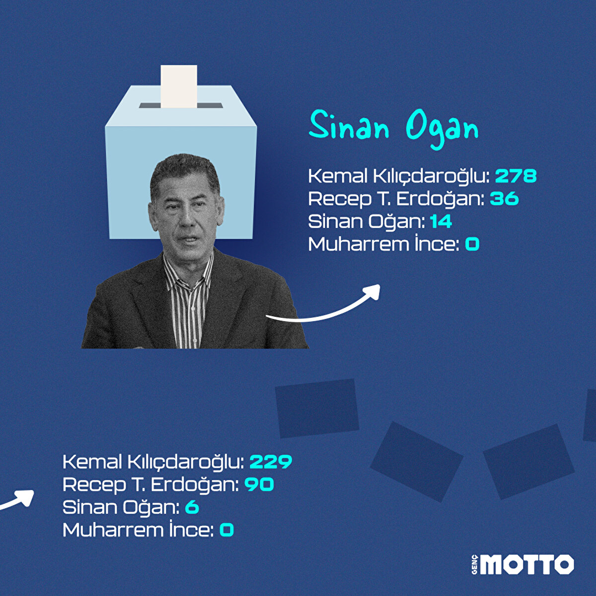 Erdoğan, Kılıçdaroğlu ve Oğan'ın sandığından hangi aday birinci çıktı?