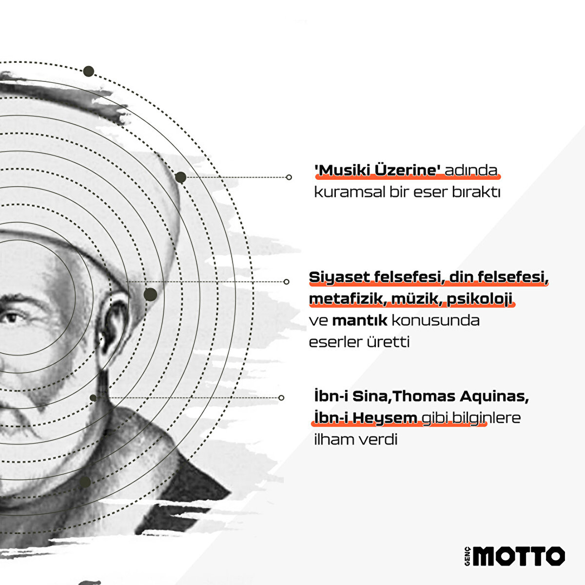İslam felsefesinin öncülerinden olan Farabi hakkında bilgileri sizin için derledik. Farabi hakkındaki daha fazla bilgi Genç Motto Eylül sayısında seni bekliyor. :)