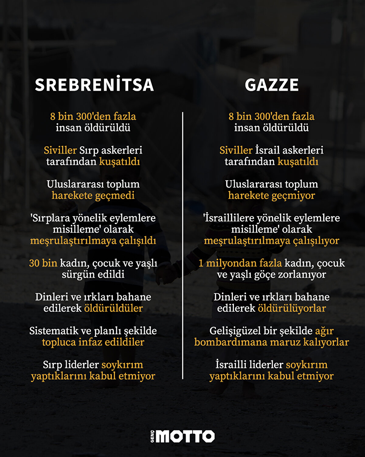İsrail'in her türlü savaş hukukunu çiğneyerek Gazze'de yaptığı katliam, Srebrenitsa'yı aratacak derecede...