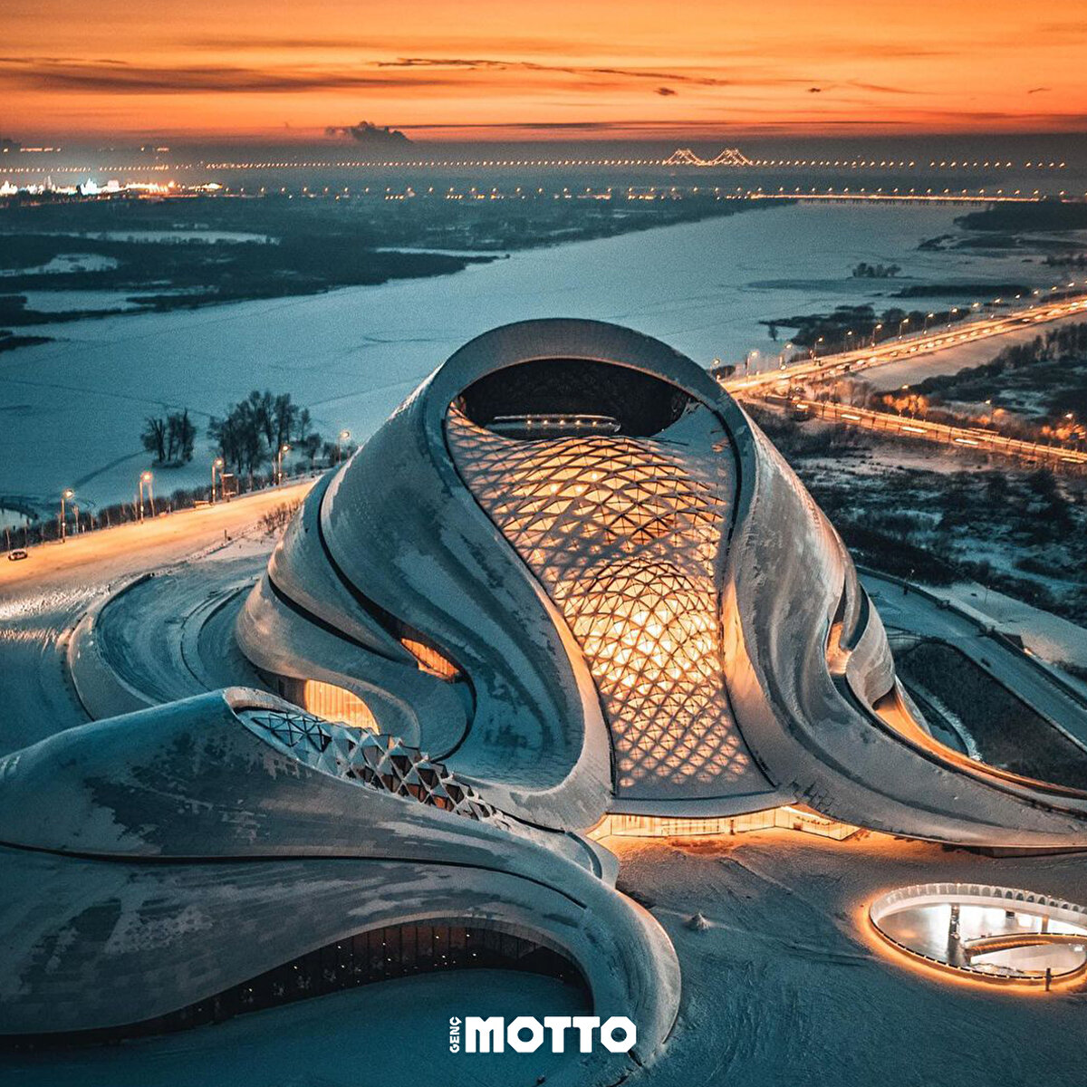 Çin'in Harbin kentinde bulunan, Harbin Opera Evi görüntüsüyle kendine resmen hayran bırakıyor 😍 80.000 m² alanı kaplayan yapı, heykelsi ve tek parça halindeki görüntüsüyle çevresi ve topoğrafyasıyla uyum içinde 🤔 İçerisinde 1600 kişilik tiyatro salonu da bulunuyor 🤓 Peki siz bu yapıyı nasıl buldunuz ❓