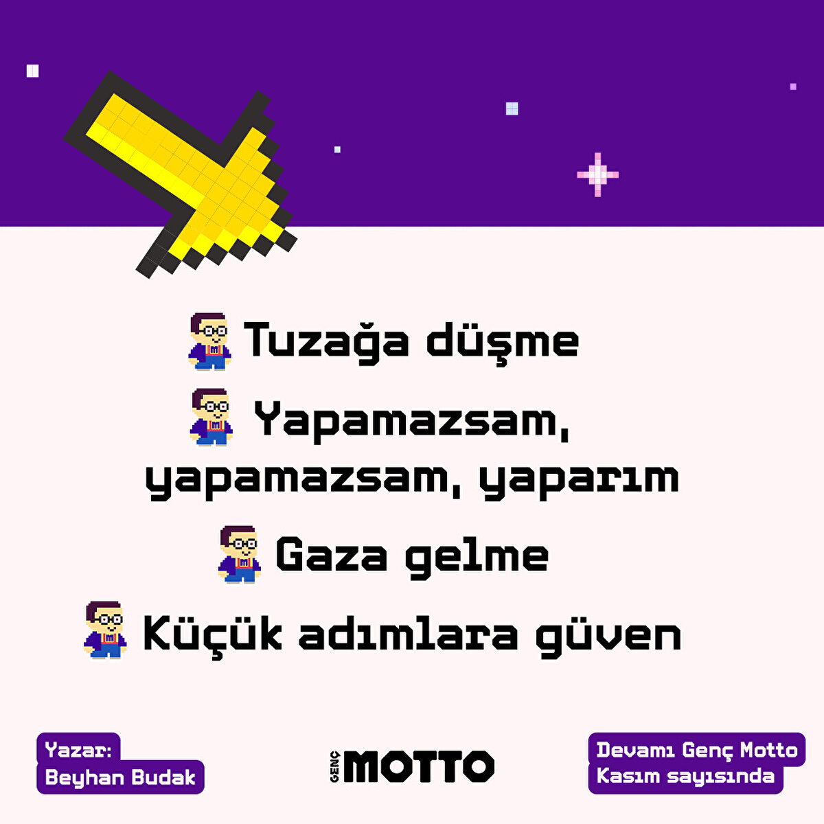 Beyhan Budak'ın 'Hayal Et Harekete Geç' yazısını sizin için derledik. 😎Devamı Genç Motto Kasım sayısında 📌