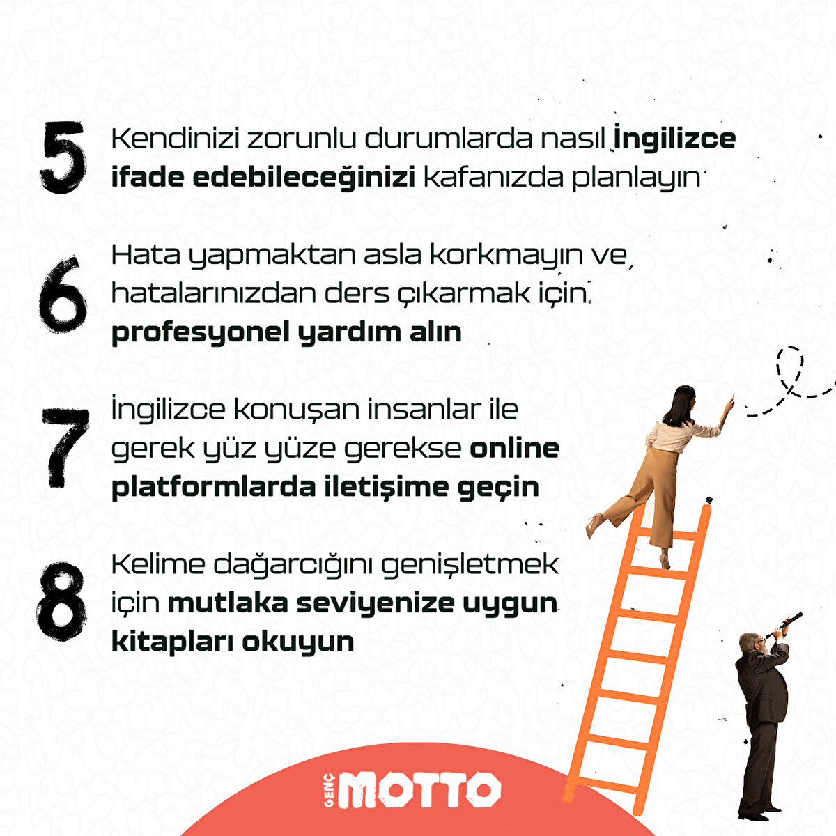 İngilizce öğrenmeye niyetlenip ama bir türlü adım atamayanlardan mısın? Ya da o adımı atıp sonrasında pes edenlerden mi? Hiç merak etme Genç Motto senin için işin kolayını araştırdı ve buldu. Neler yapman gerektiğini de yine senin için sıraladı. Şimdi uygulama sırası sende 🙌