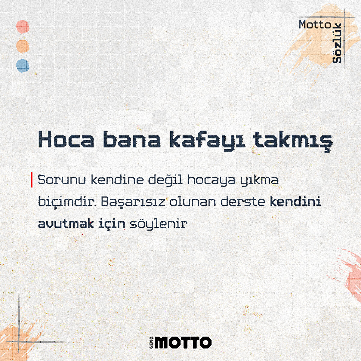 Motto sözlük yine bir klişeyi ortadan kaldırıyor. Hepimizin öğrenciyken kullandığı bu cümlenin aslında ne için söylendiği ortada.